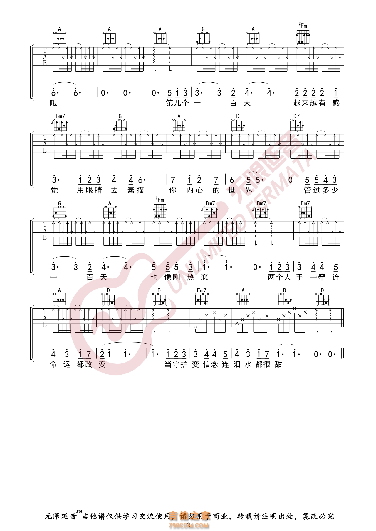 林俊杰《第几个一百天》吉他谱-C调弹唱谱