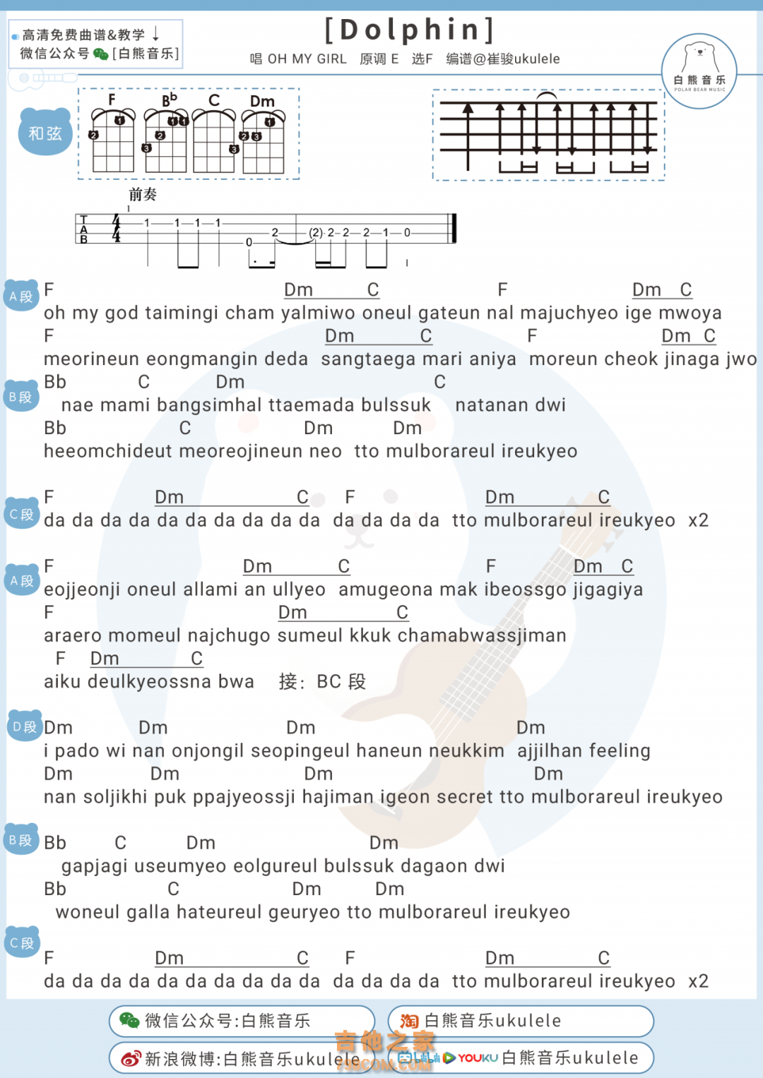 OHMYGIRL《Dolphin》尤克里里-C调弹唱谱