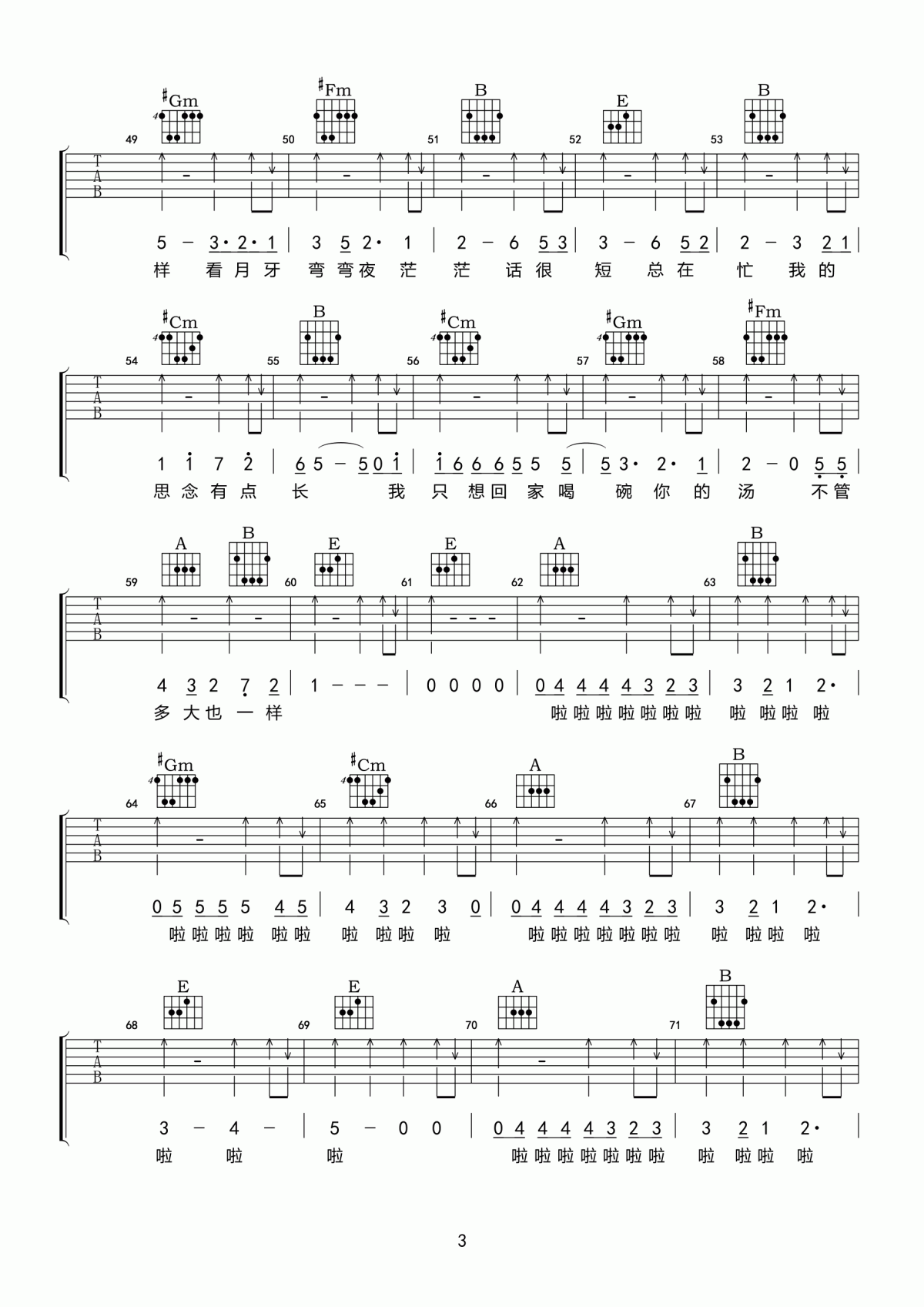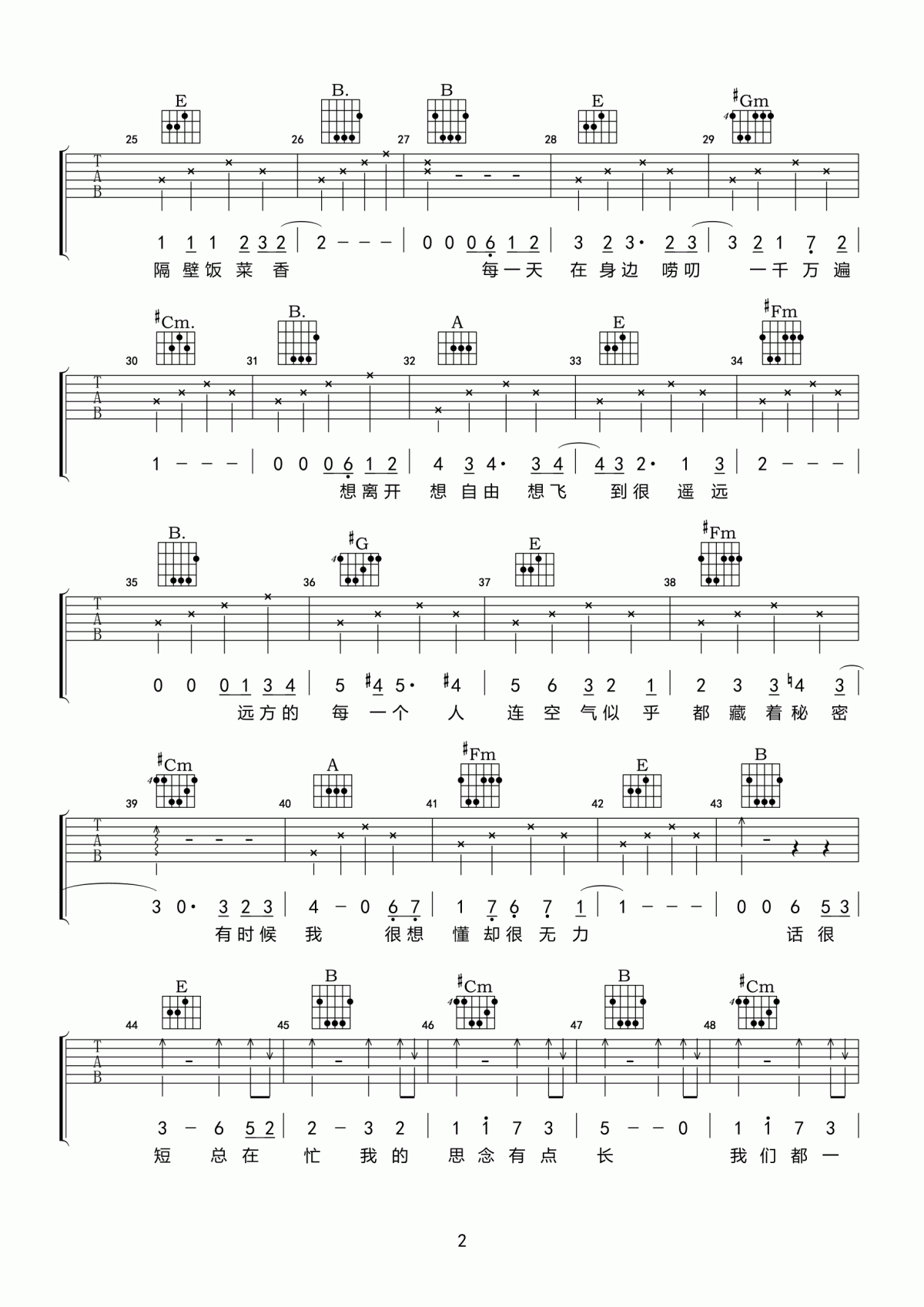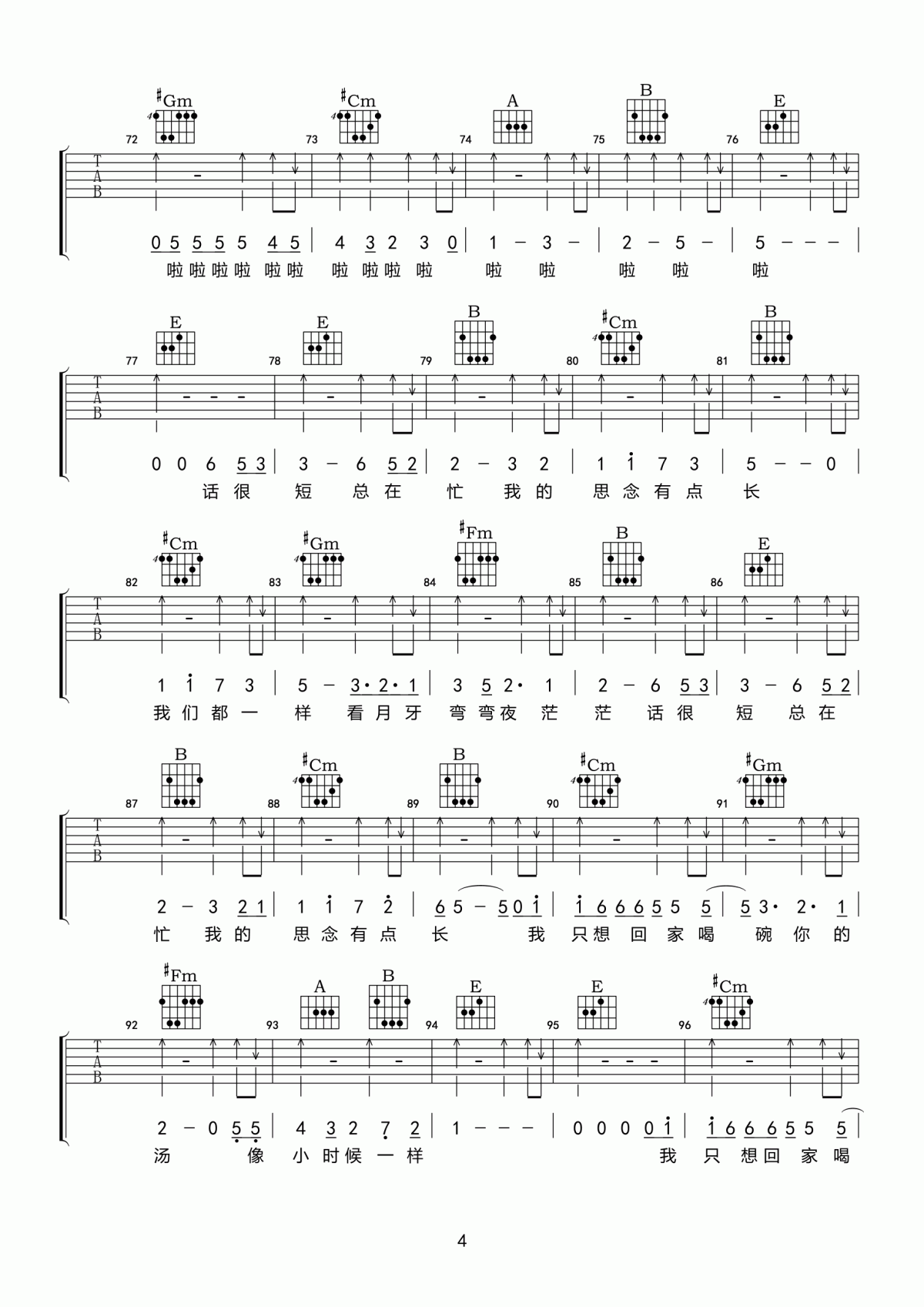 谭佑铭《开饭了》吉他谱_-E调弹唱谱