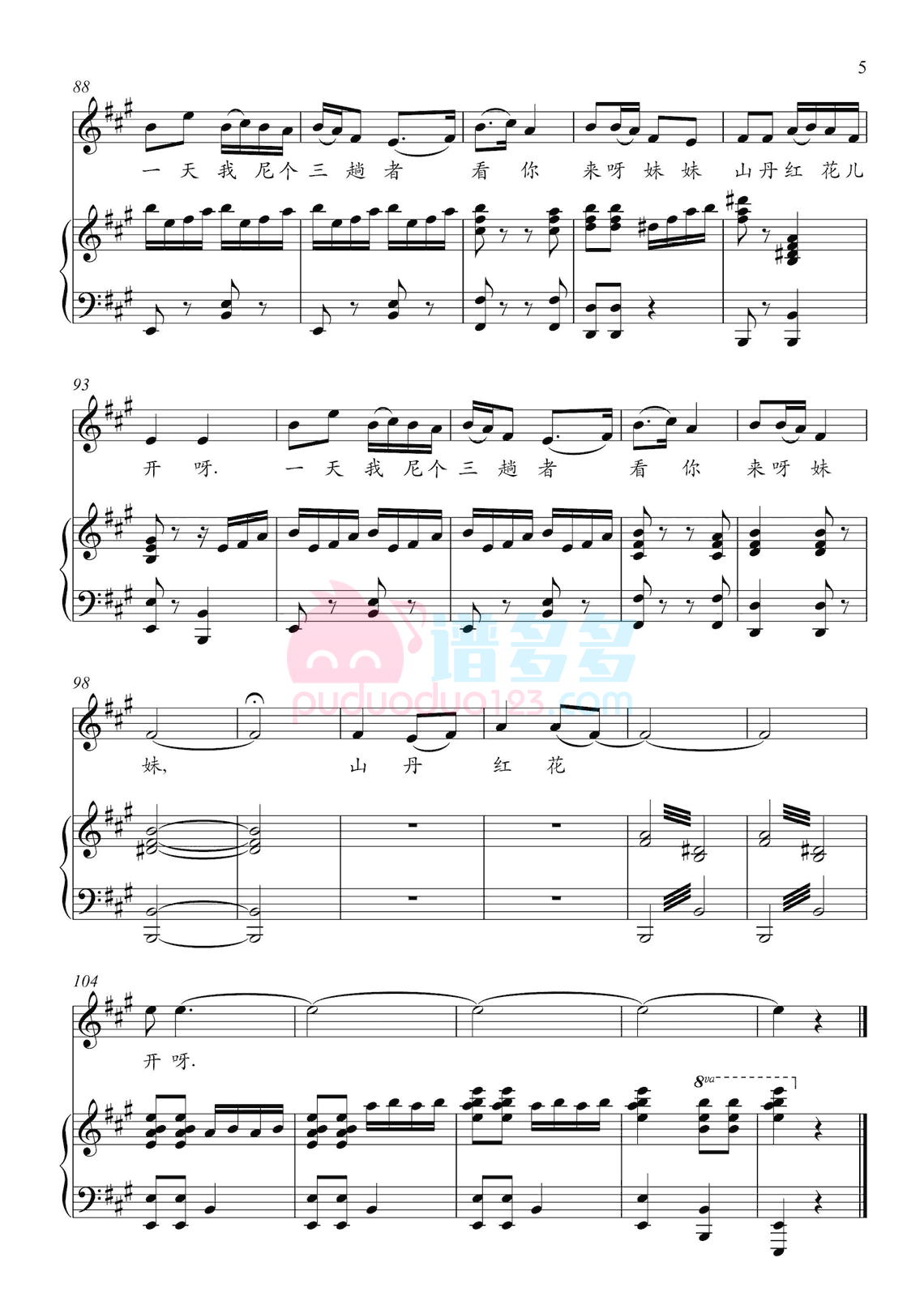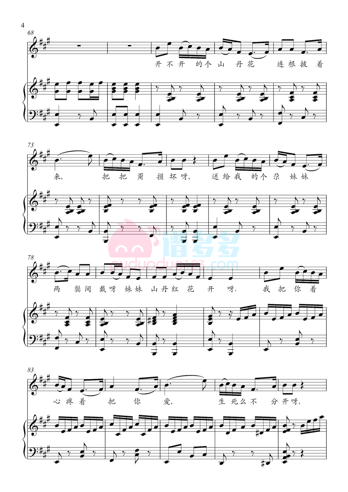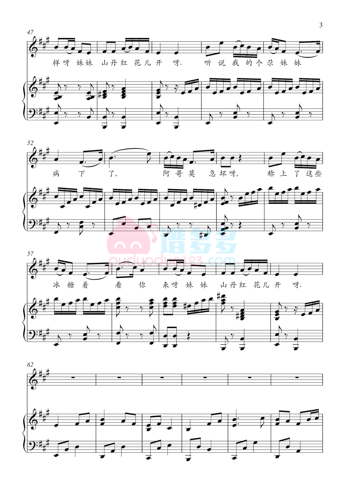 兰天《尕妹妹的山丹花儿开》钢琴谱