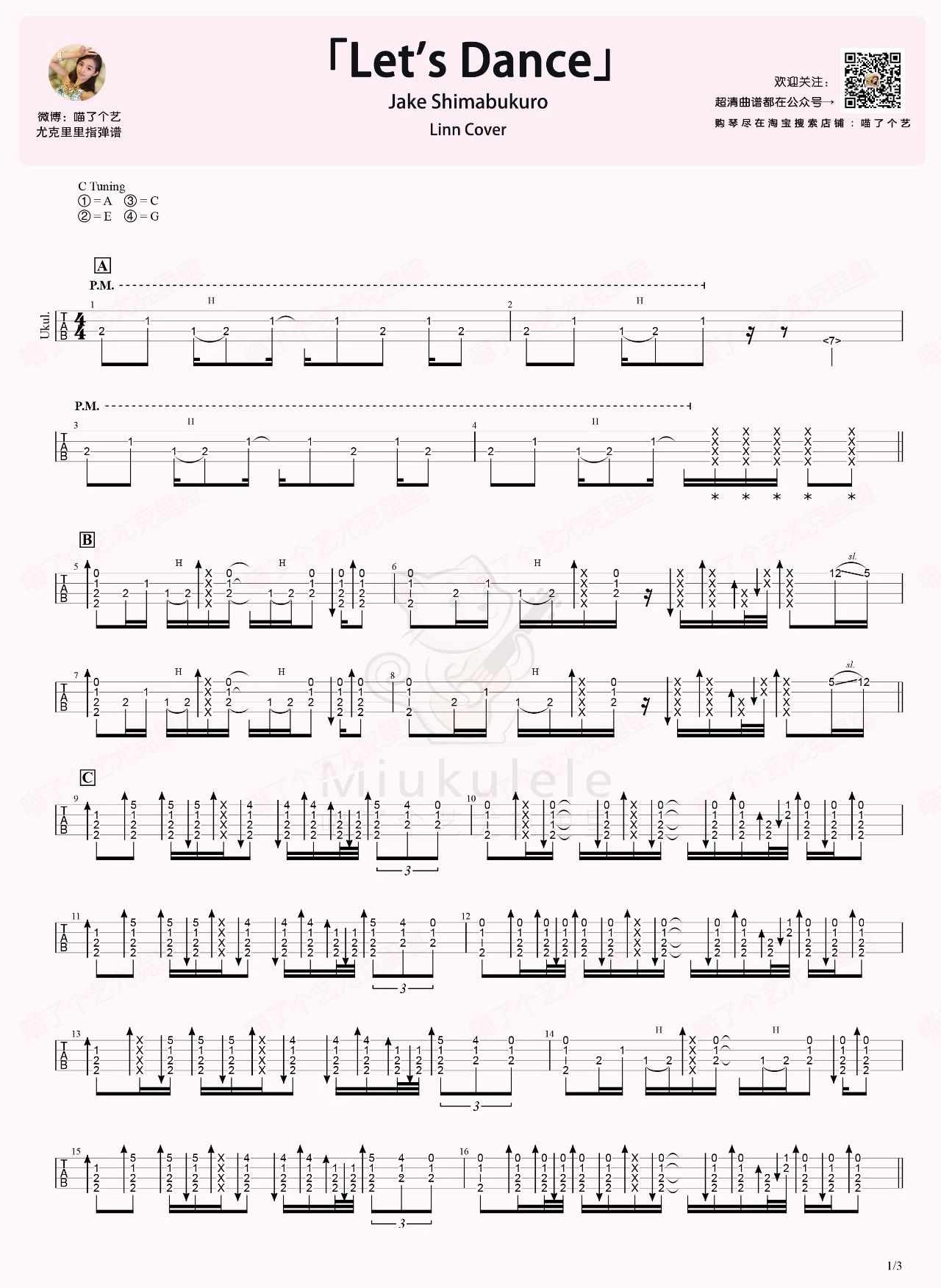 Jake《Let'sDance》尤克里里谱-C调指弹谱