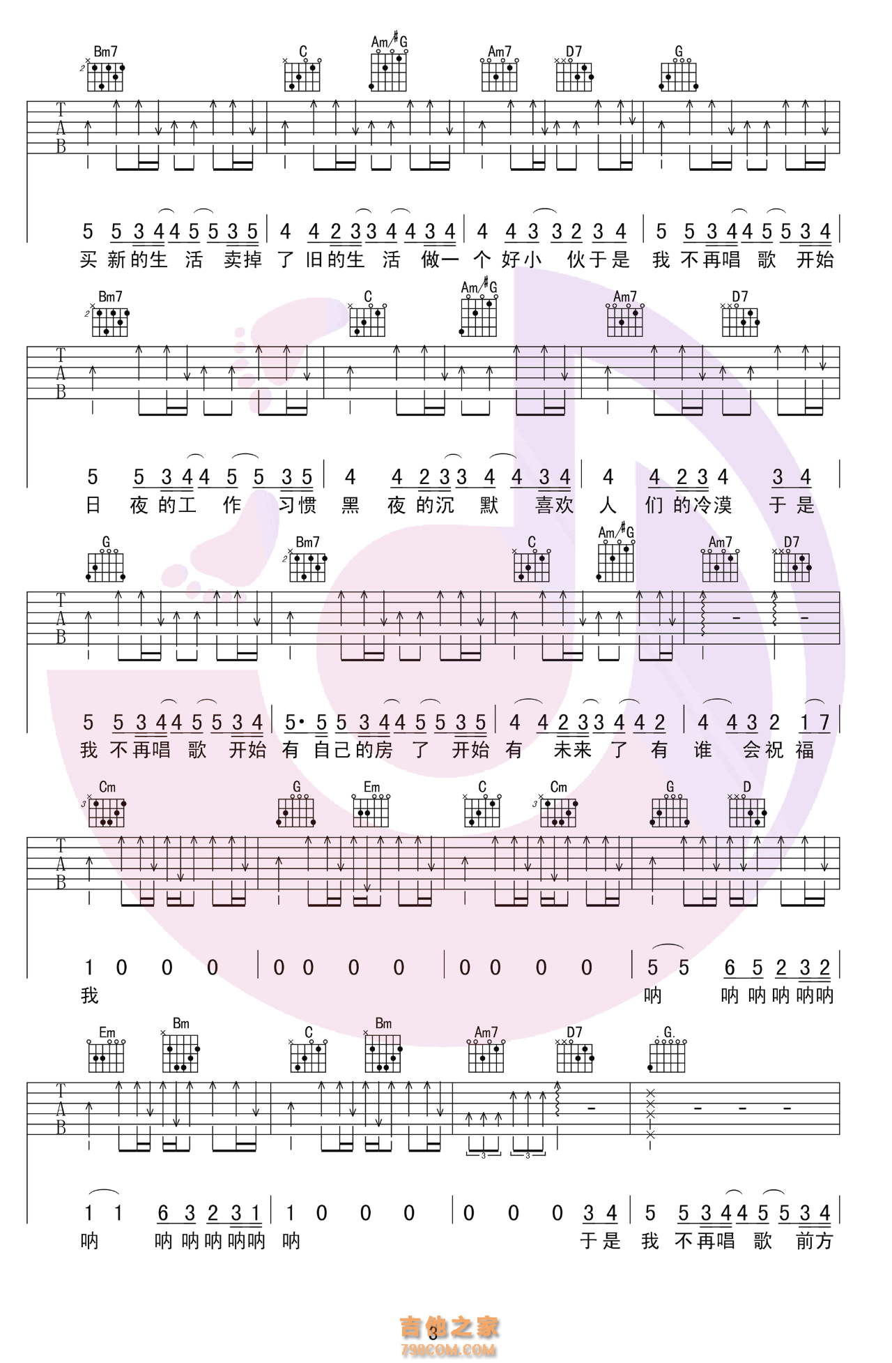 旅行团 于是我不再唱歌 吉他弹唱谱 行叁人吉他工作室