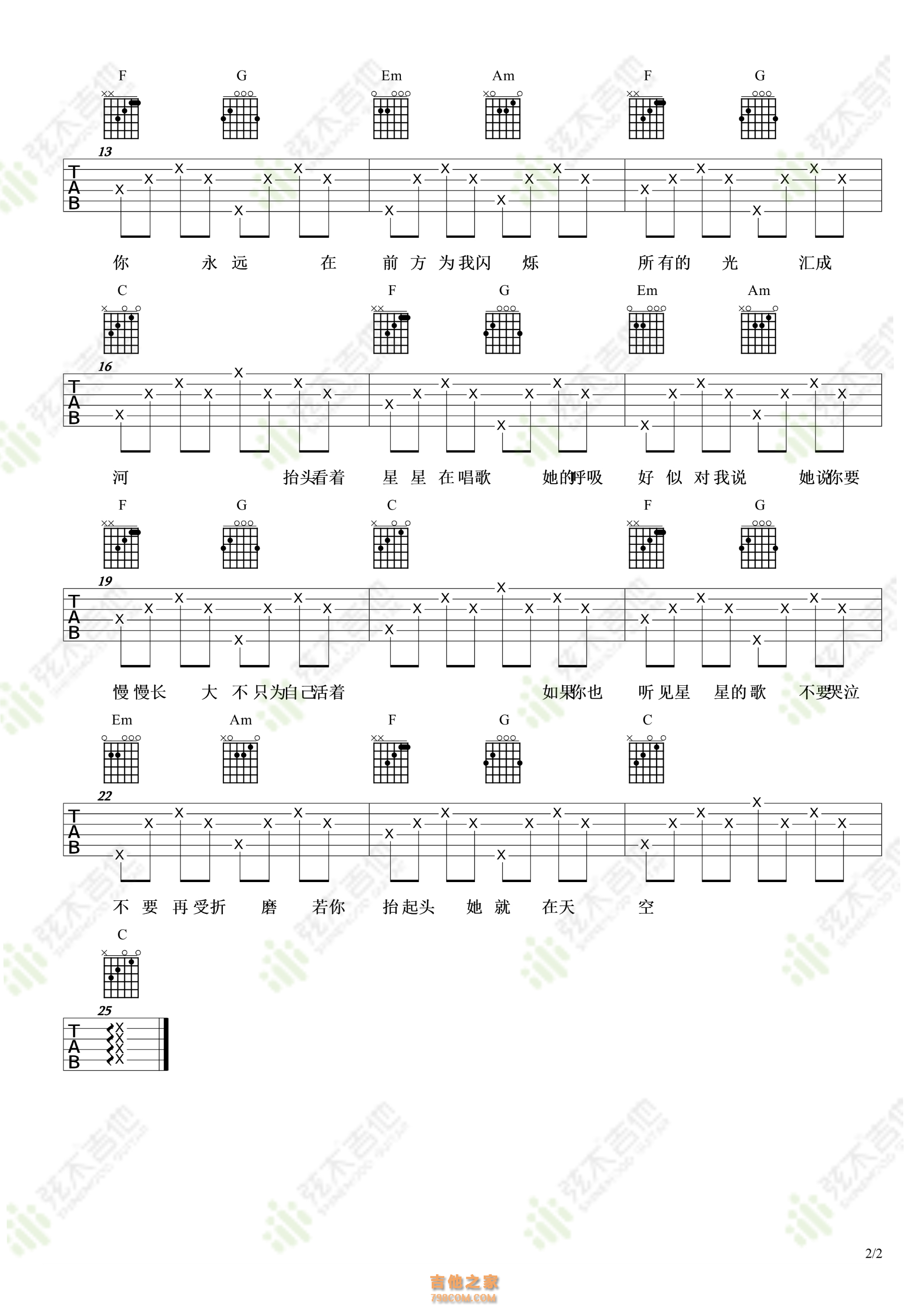 司南《星星在唱歌》吉他谱 弦木吉他