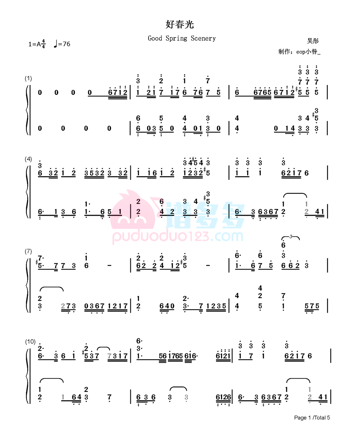 未经允许不得转载:酷玩吉他>>钢琴>>吴彤《好春光》贺岁版单曲钢琴谱