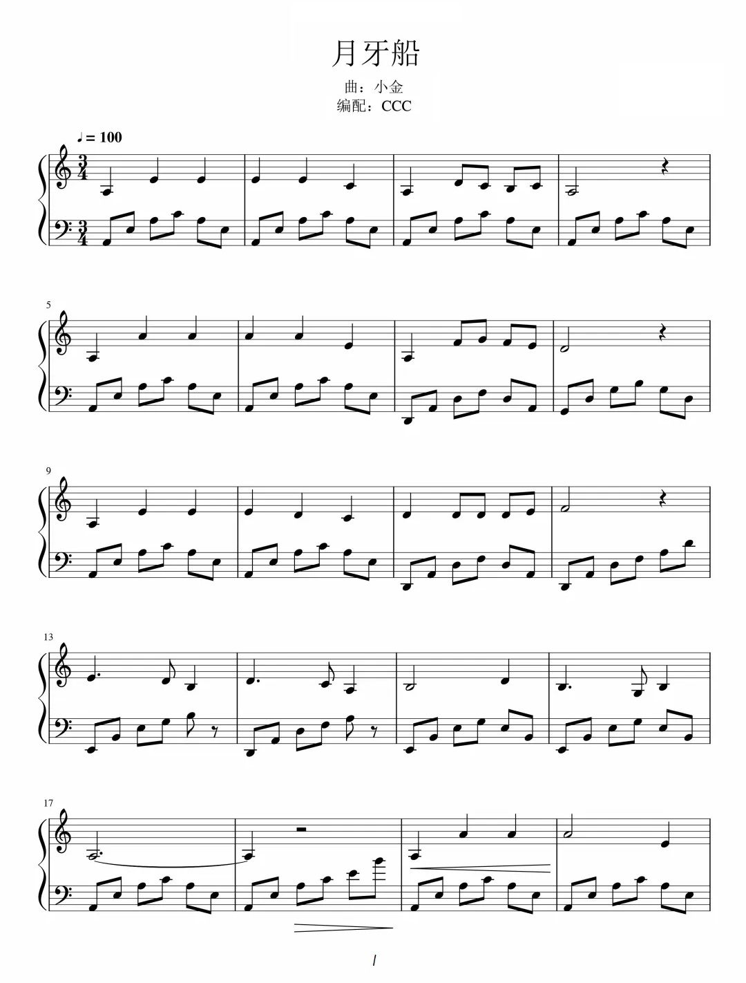 《月牙船》钢琴谱