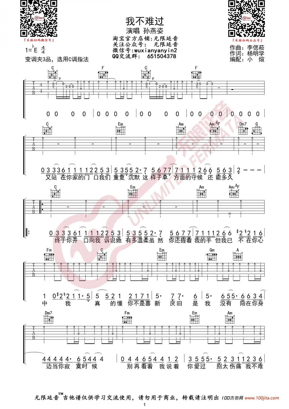<<我不难过>>吉他谱_孙燕姿_