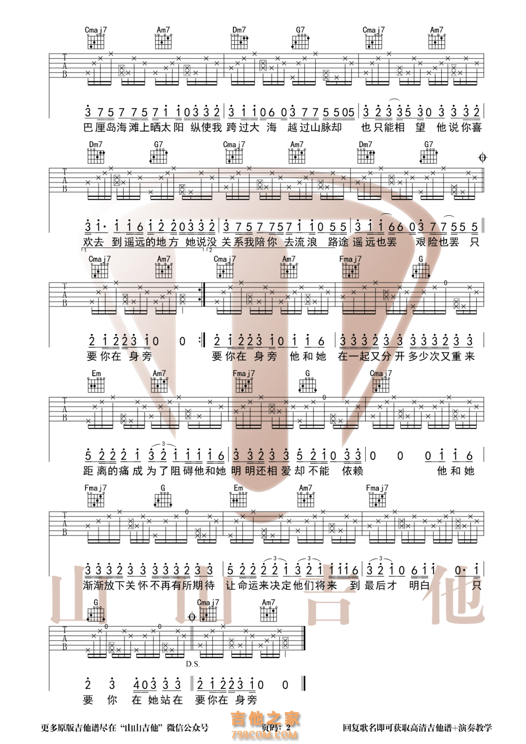 - 陈栢宇《你瞒我瞒》吉他谱_吉他弹唱谱_7t吉他教室编配