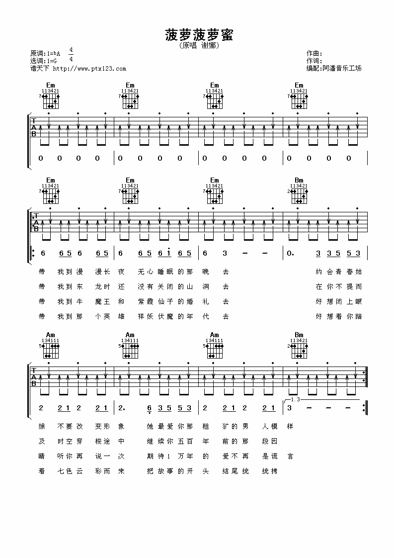 菠萝菠萝蜜吉他谱G调扫弦版_阿潘音乐工场编配_谢娜