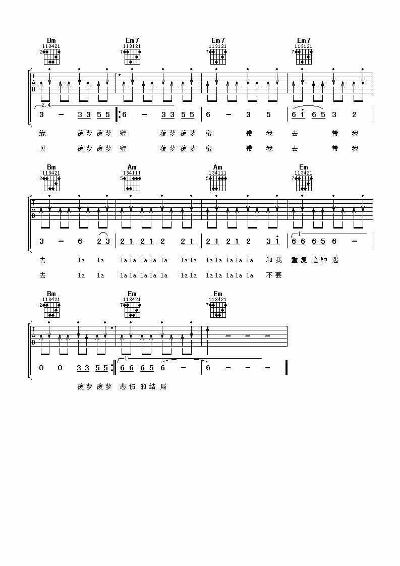 菠萝菠萝蜜吉他谱 G调扫弦版_阿潘音乐工场编配_谢娜