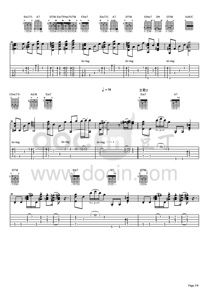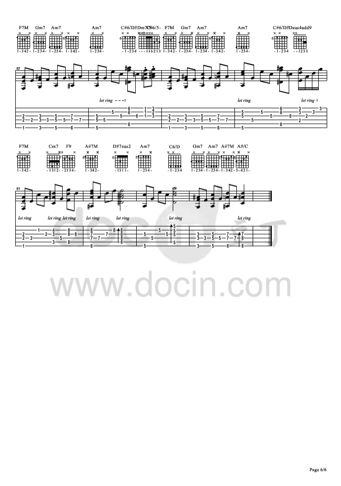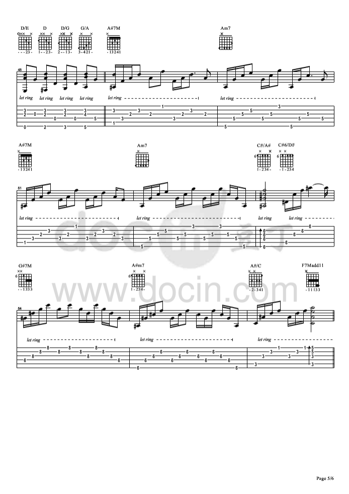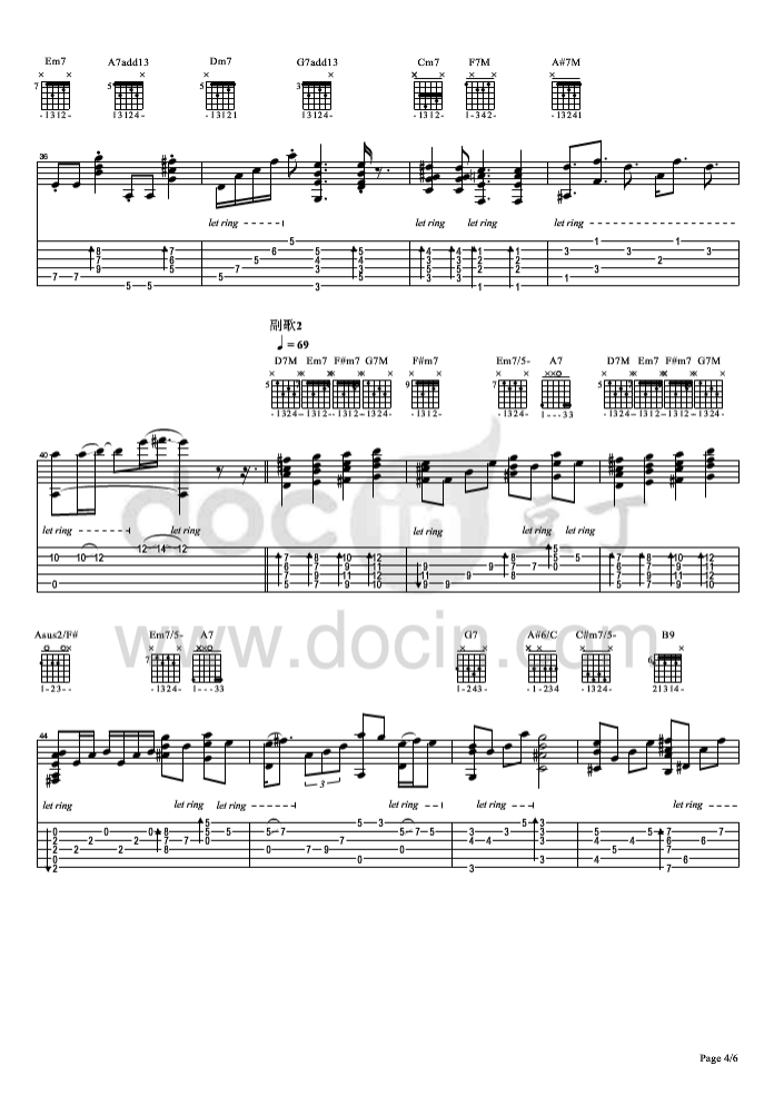 四人游指弹谱 原调六线谱_豆丁网编配_方大同