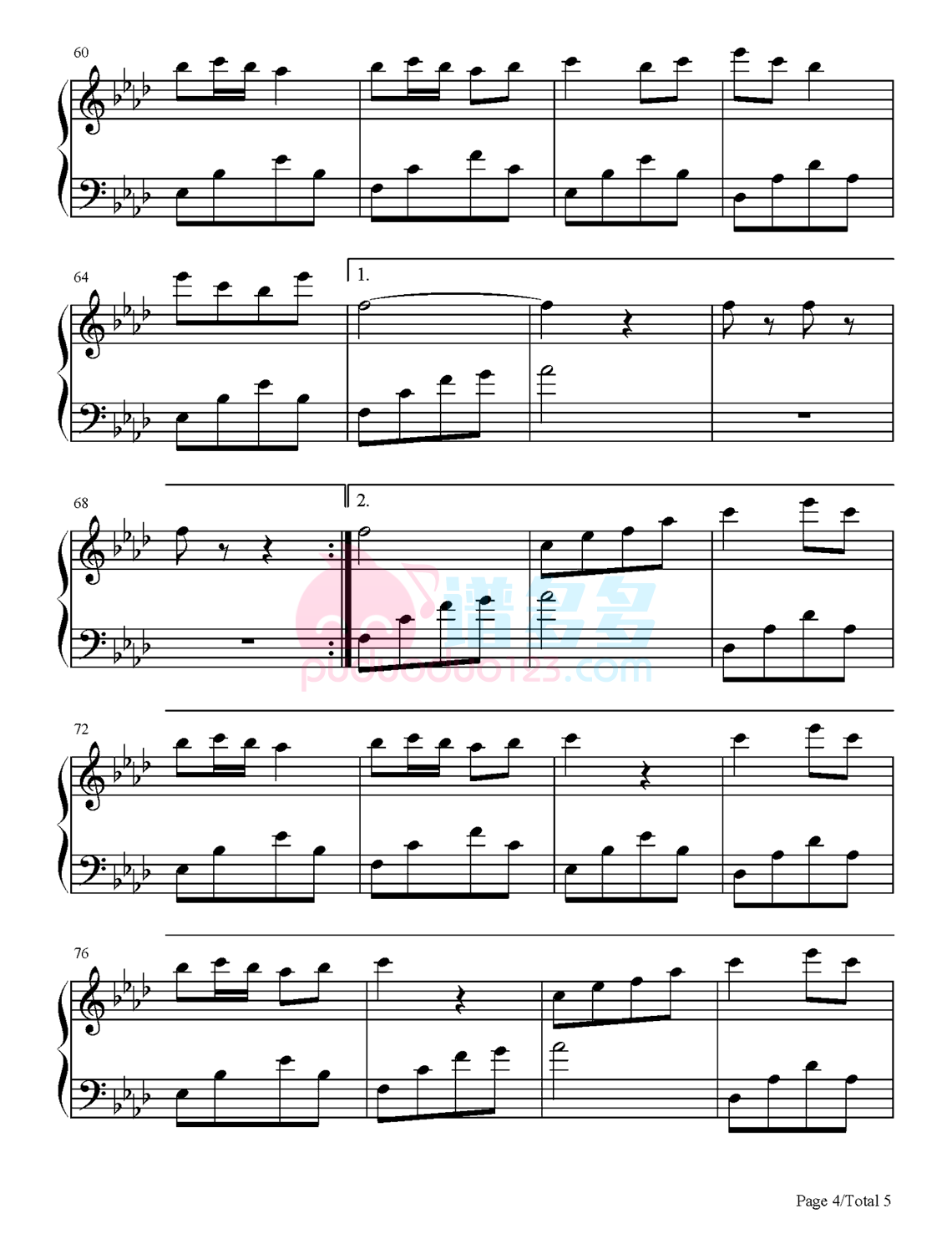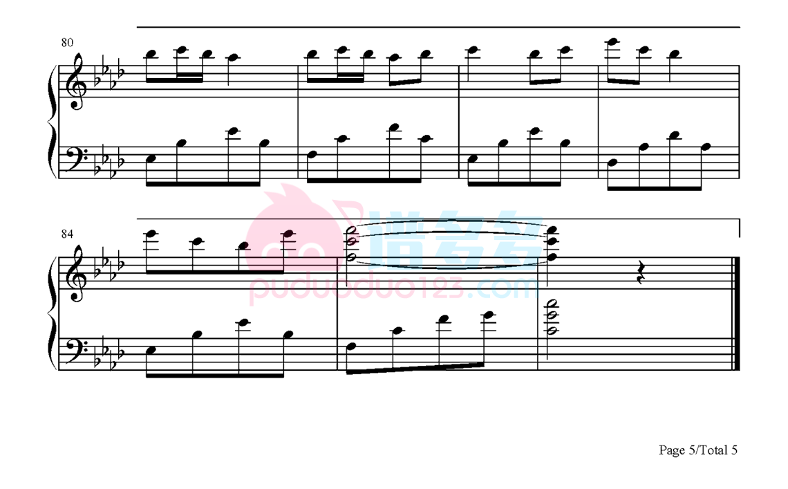银临《秋千令》钢琴谱,采用14调指法编配,共有5张高清图谱。