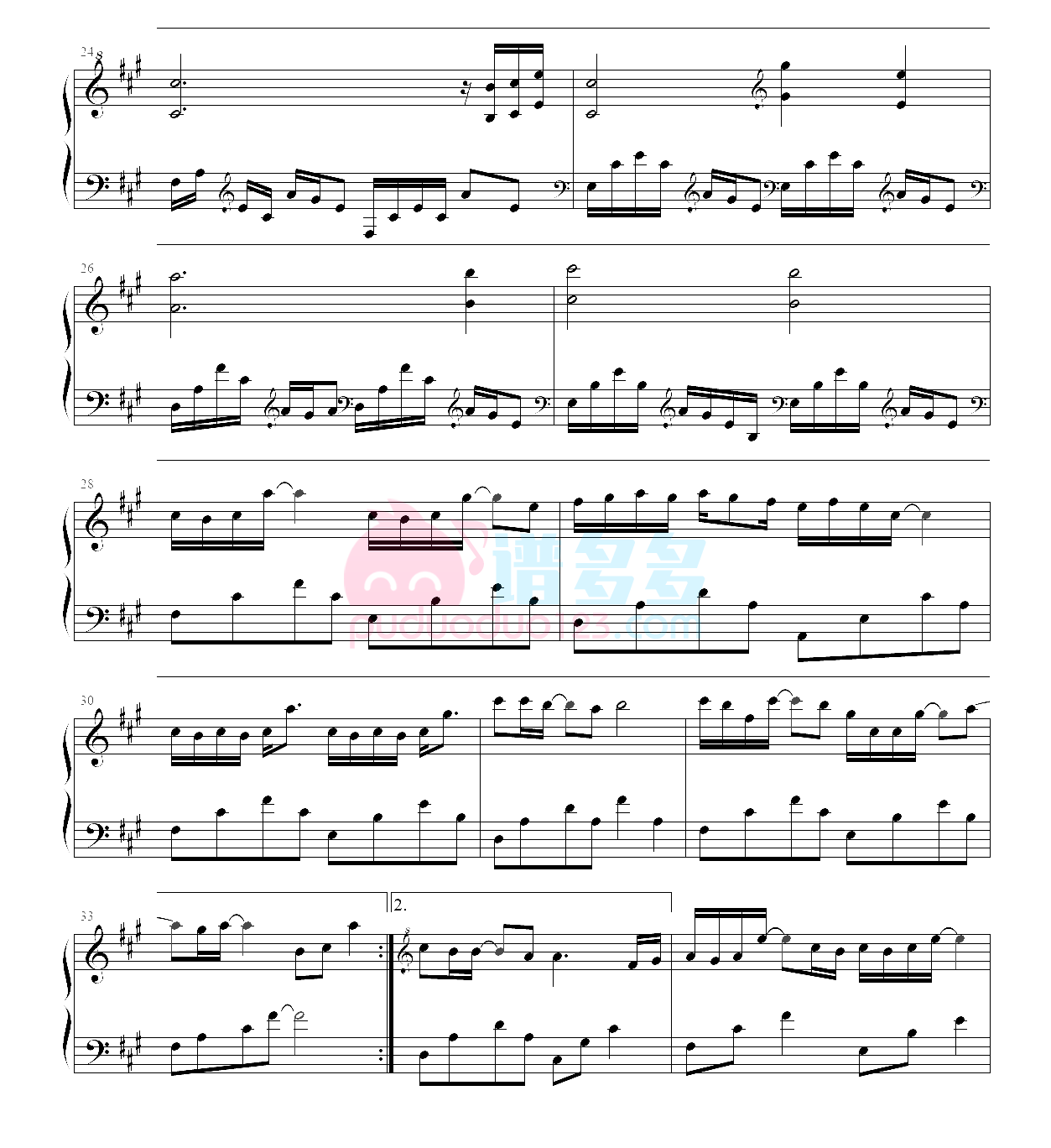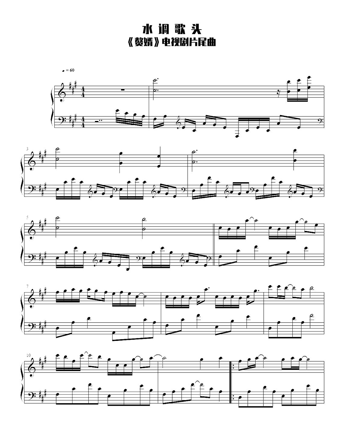 郑云龙《水调歌头》钢琴五线谱