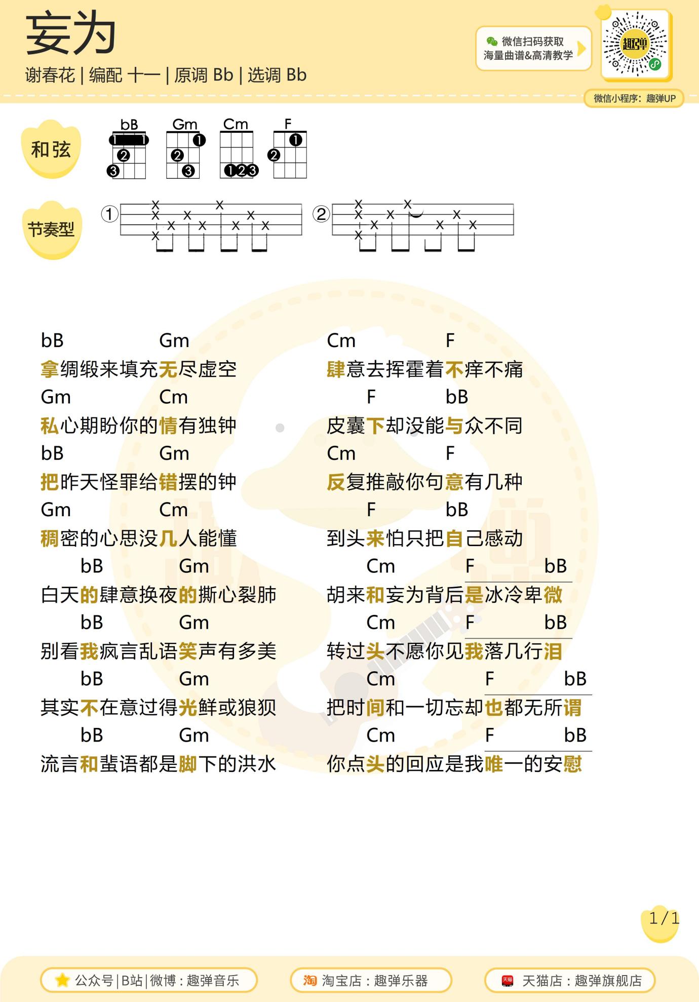 妄为尤克里里谱_谢春花
