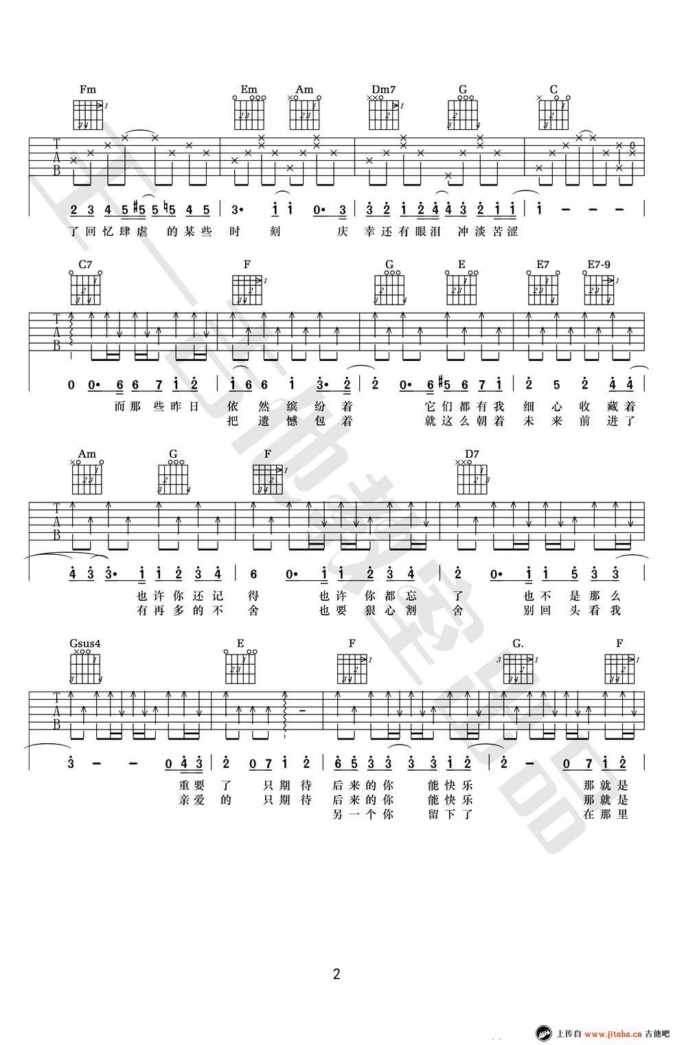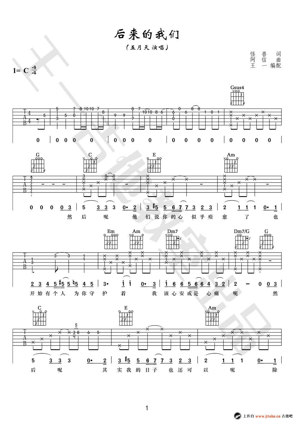五月天《后来的我们》吉他谱,采用C调指法编配,共有2张高清图谱,免翻页排版设计。