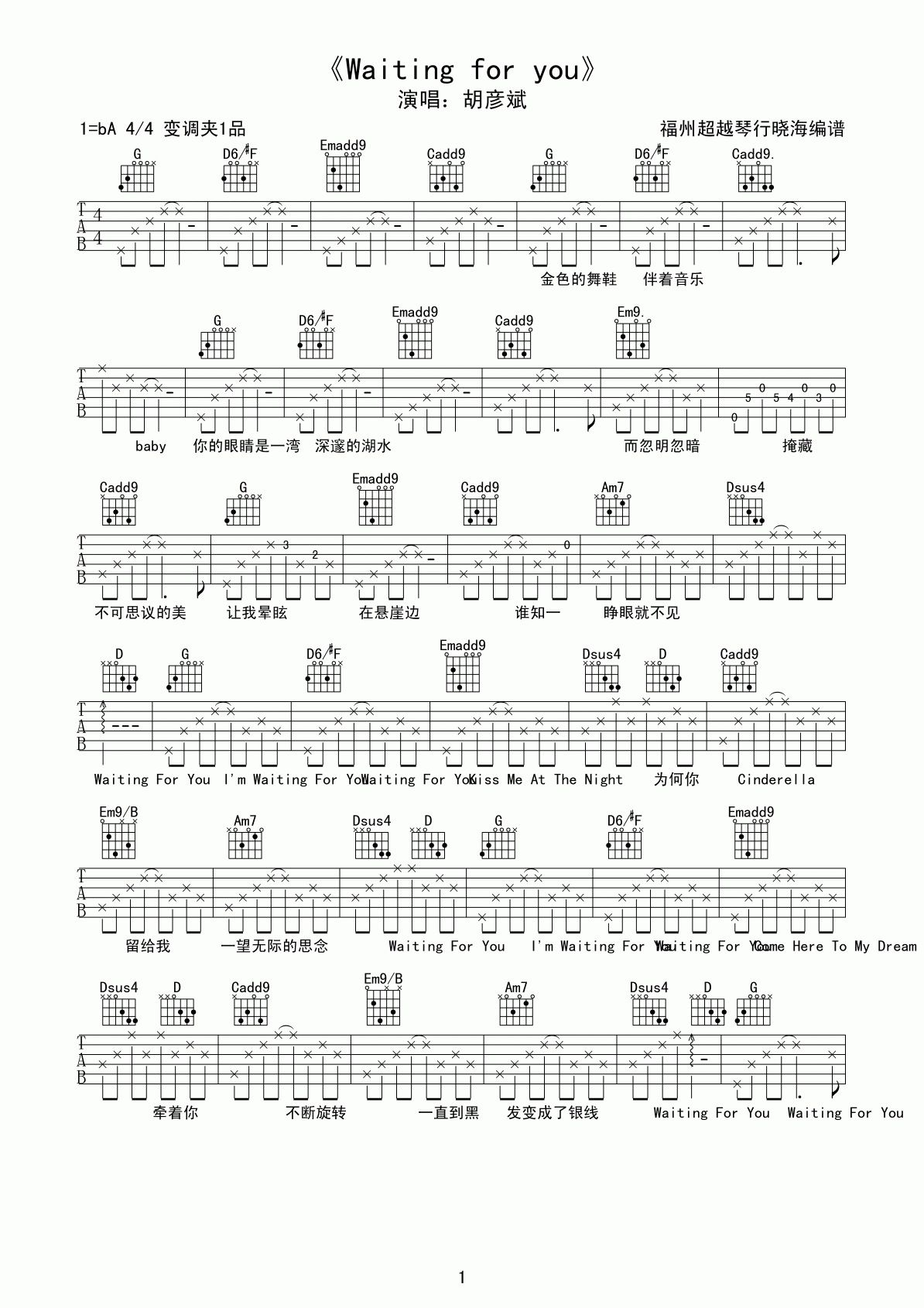 Waiting For You吉他谱 胡彦斌