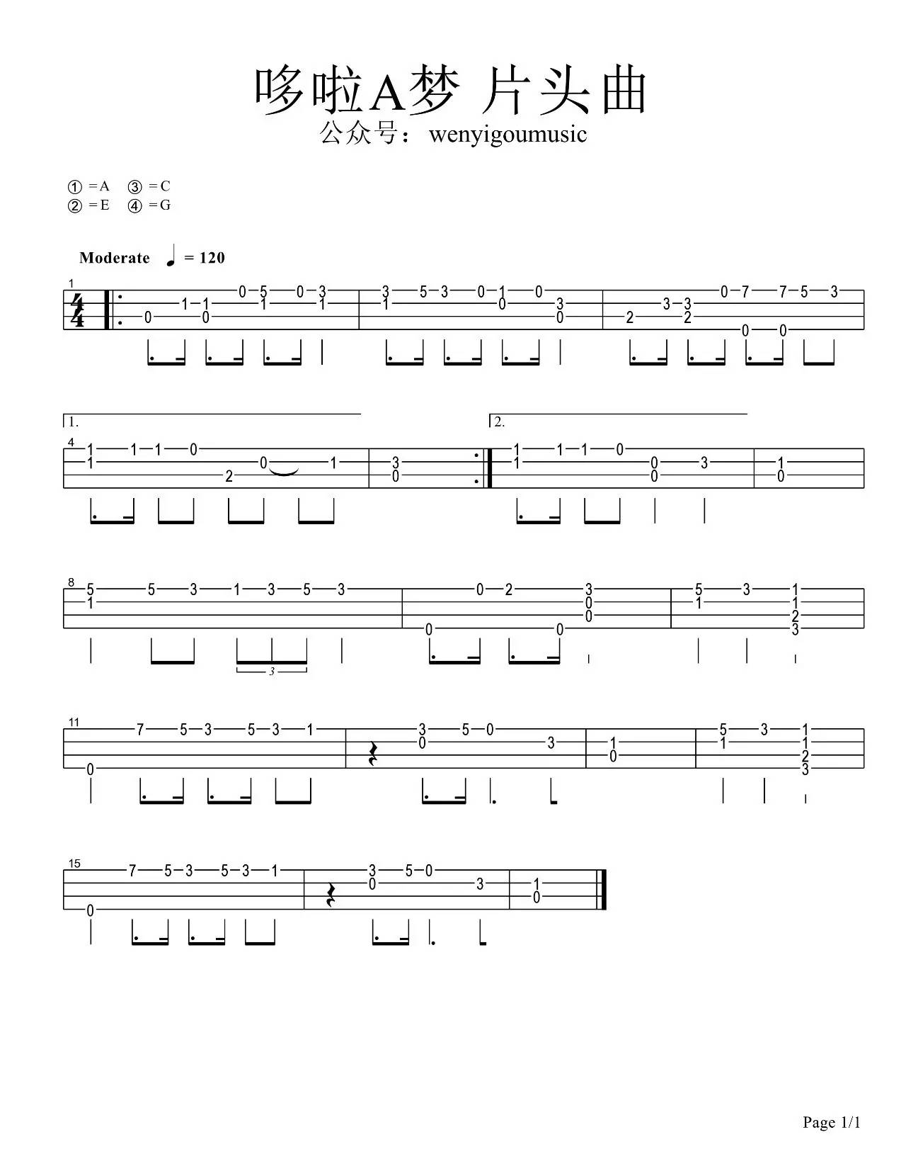 多啦A梦片头曲 ukulele 指弹