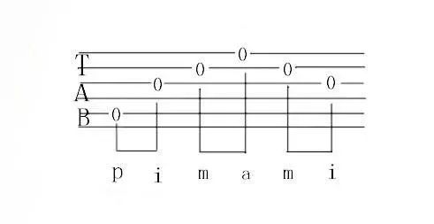 右手指法的练习 5323 “5323”就是指右手的拇指弹响五弦空弦、食指弹响三弦空弦,中指弹响二弦,食指弹响三弦。同学们可以跟着下面的谱子练习: 我们最开始选择练习5323,是因为对于没有学过吉他的同学来说,右手的无名指其实是非常不容易控制的,所以先练习拇指、中指、食指来找到拨弦的感觉,等练习顺畅后,慢慢的加入无名指练习。 532123 “532123”这个练习加入了无名指,根据下面谱子同学们很清楚的就能弹奏出“532123”了,右手拇指弹响五弦空弦,食指弹响三弦空弦,中指弹响二弦空弦,无名指弹响一弦空弦。其余以此类推即可。 53231323 “53231323”是综合性的练习,调动右手拇指、食指、中指、无名指,锻炼右手各个手指的力量及协调性。 划重点: 这三组右手练习的时候的,要遵从三个原则“慢速、持续、稳定”,先让右手建立起这种拨弦状态,最后再讲求速度,一定要记住,速度是最后才追求的,并不是快就是好。 特别是在刚开始练习的时候,手指需要一个适应的过程,这时更加需要放慢速度。但是放慢速度并不代表着,毫无节奏的慢,练习要跟着节拍器,让右手在规定的时间里标标准准的完成系列动作才算合格。