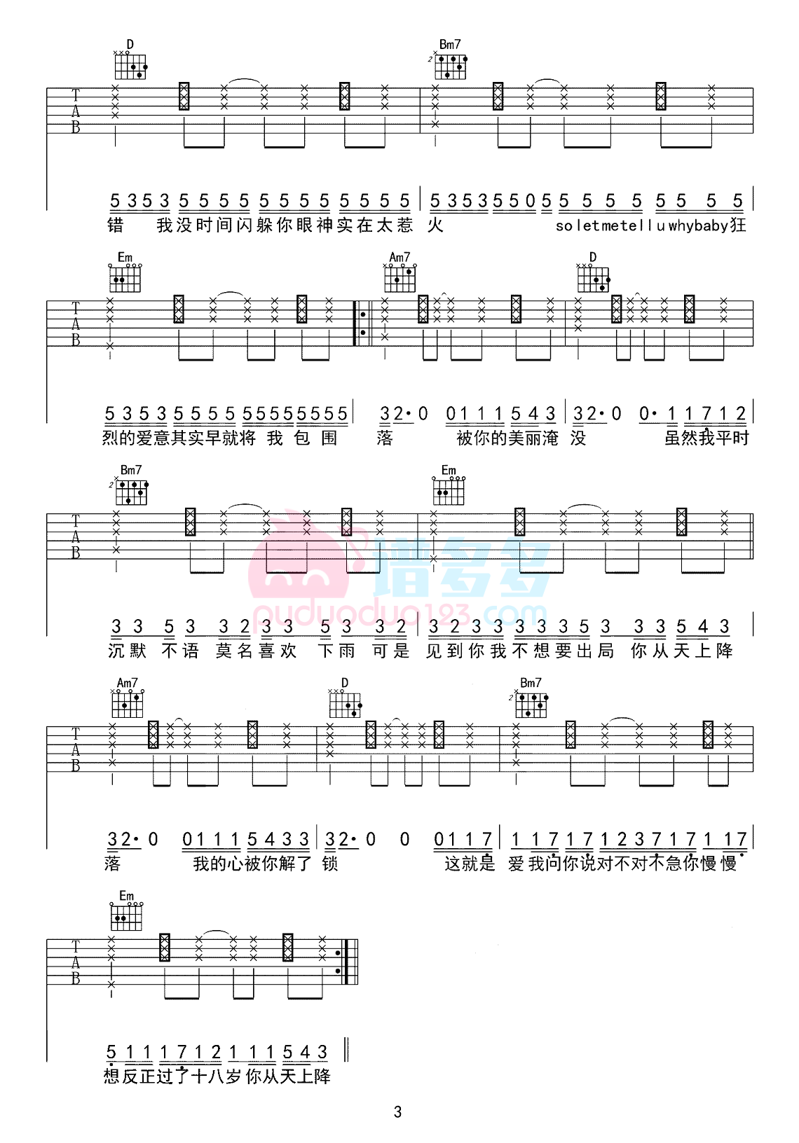 - 陈栢宇《你瞒我瞒》吉他谱_吉他弹唱谱_7t吉他教室编配