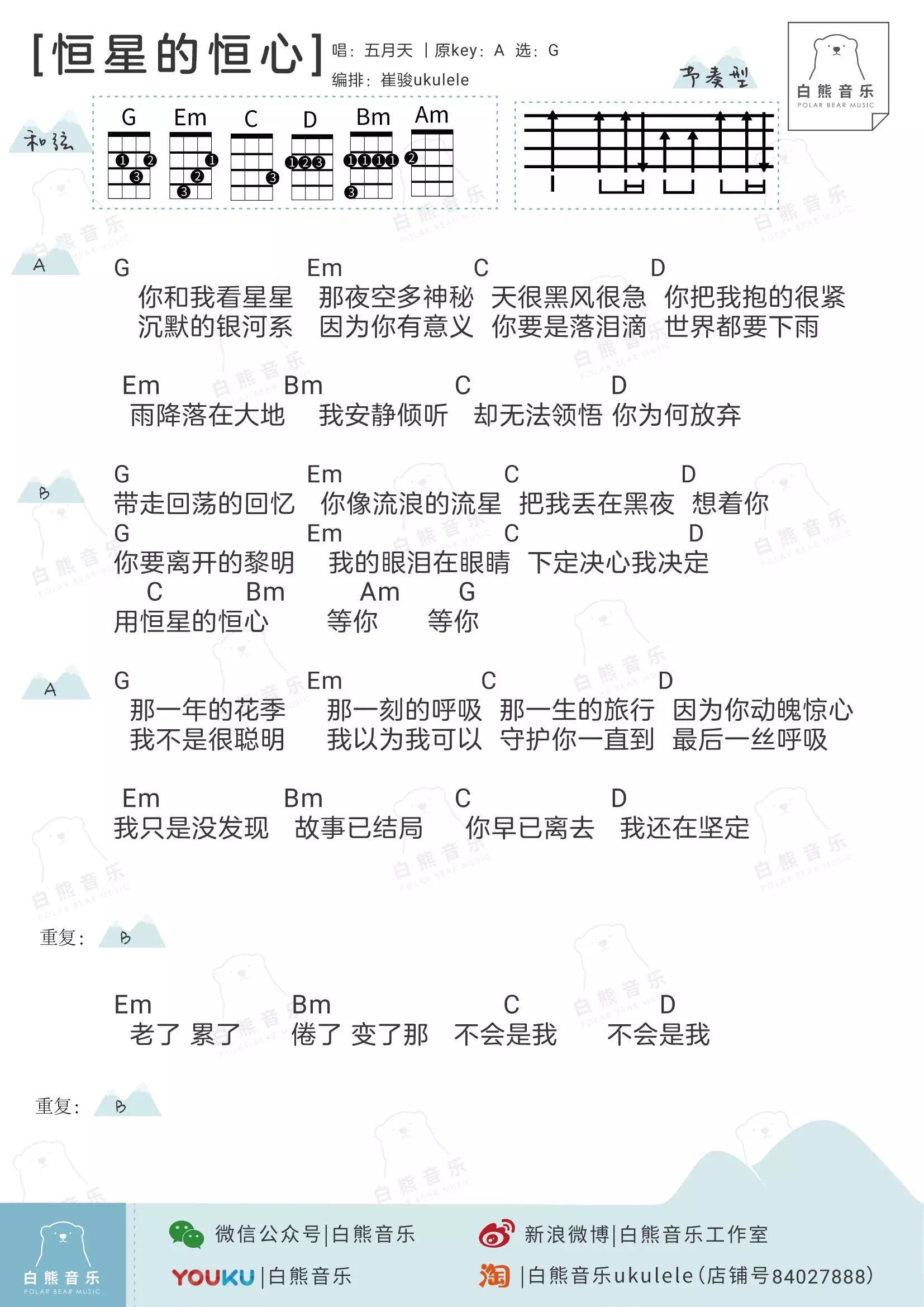 《恒星的恒心》五月天 尤克里里乐谱