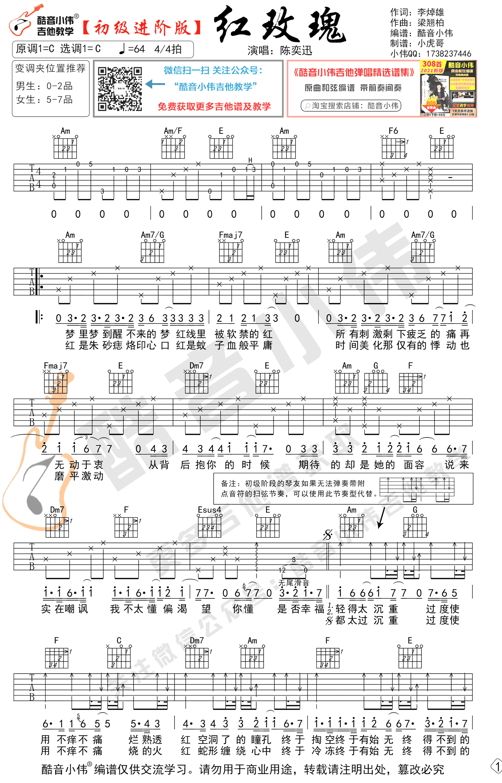 《红玫瑰》吉他谱_陈奕迅_C调原版六线谱