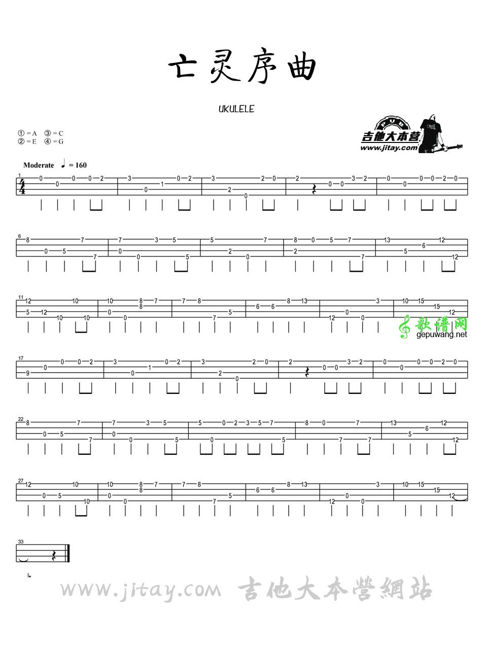 亡灵序曲尤克里里谱亡灵序曲ukulele指弹谱