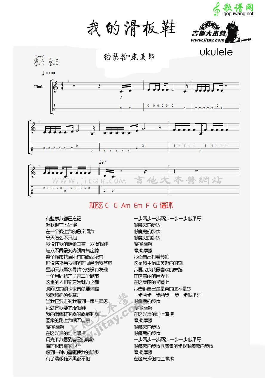 我的滑板鞋尤克里里谱ukulele谱