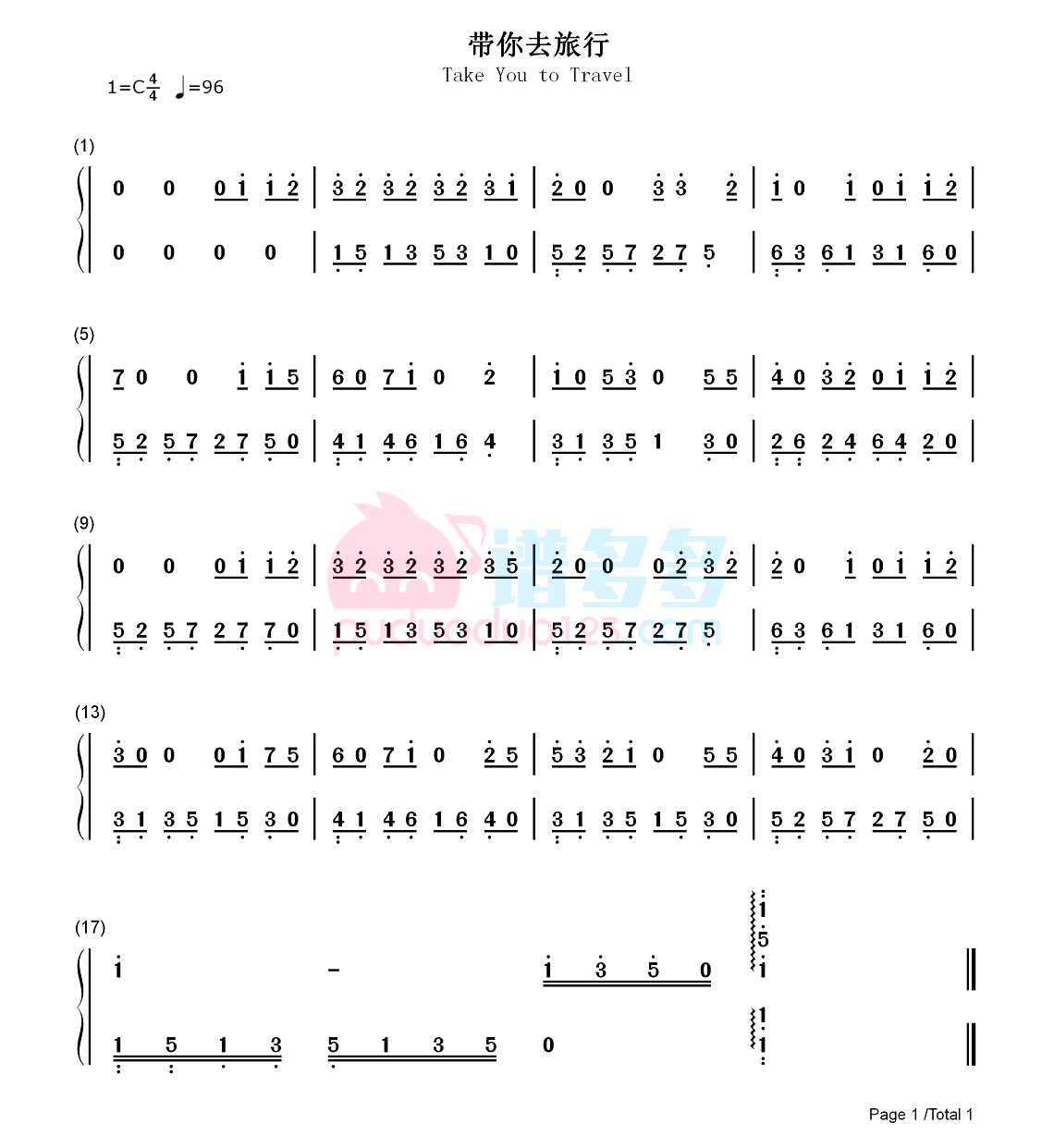 《带你去旅行》副歌部分 钢琴谱