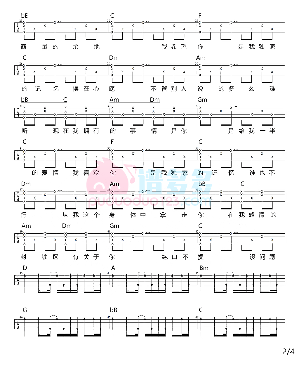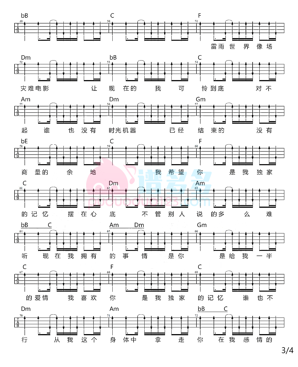 - 陈小春《独家记忆》吉他谱_吉他弹唱谱_又又吉他编配