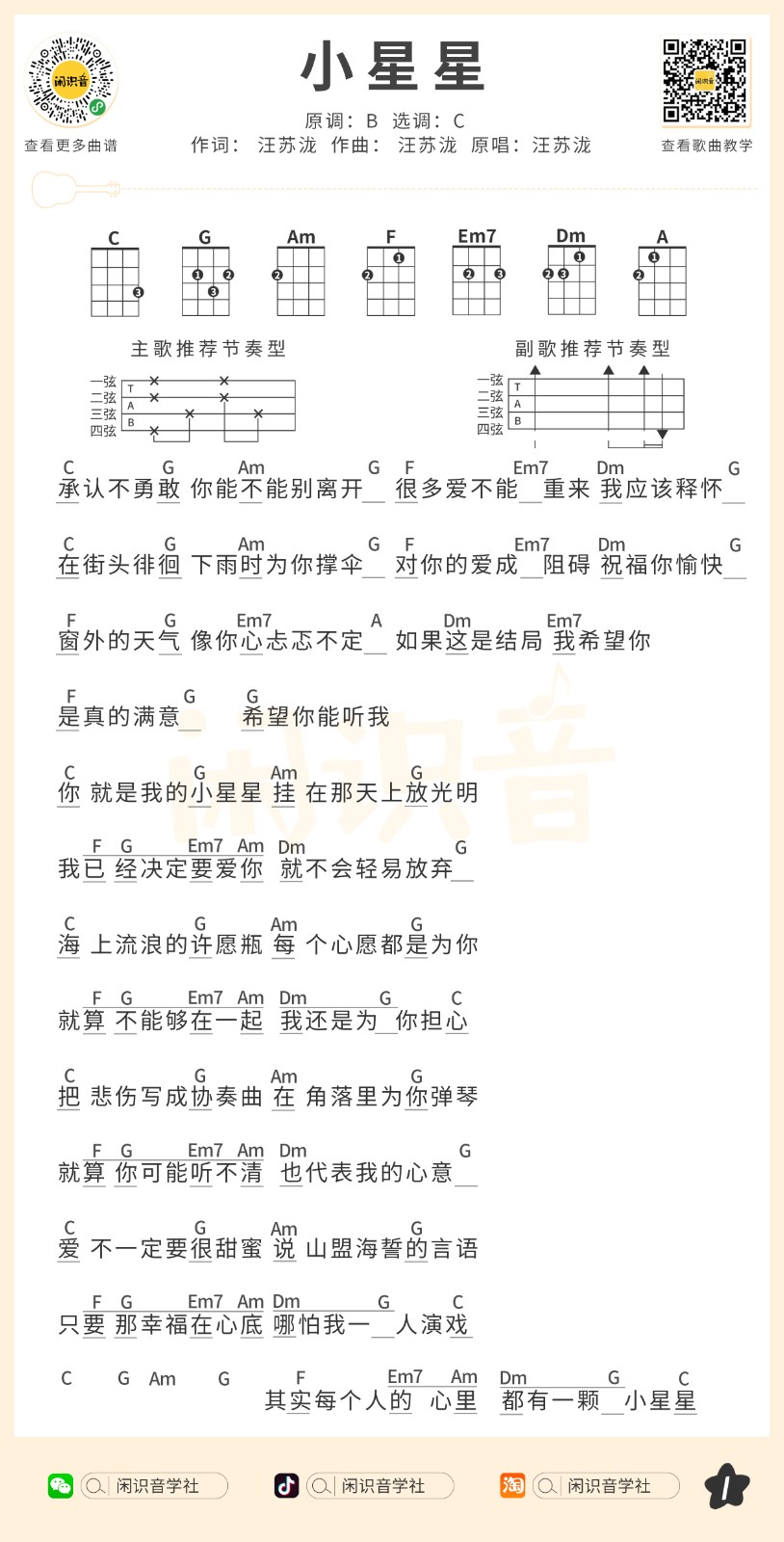 汪苏泷《小星星》尤克里里曲谱