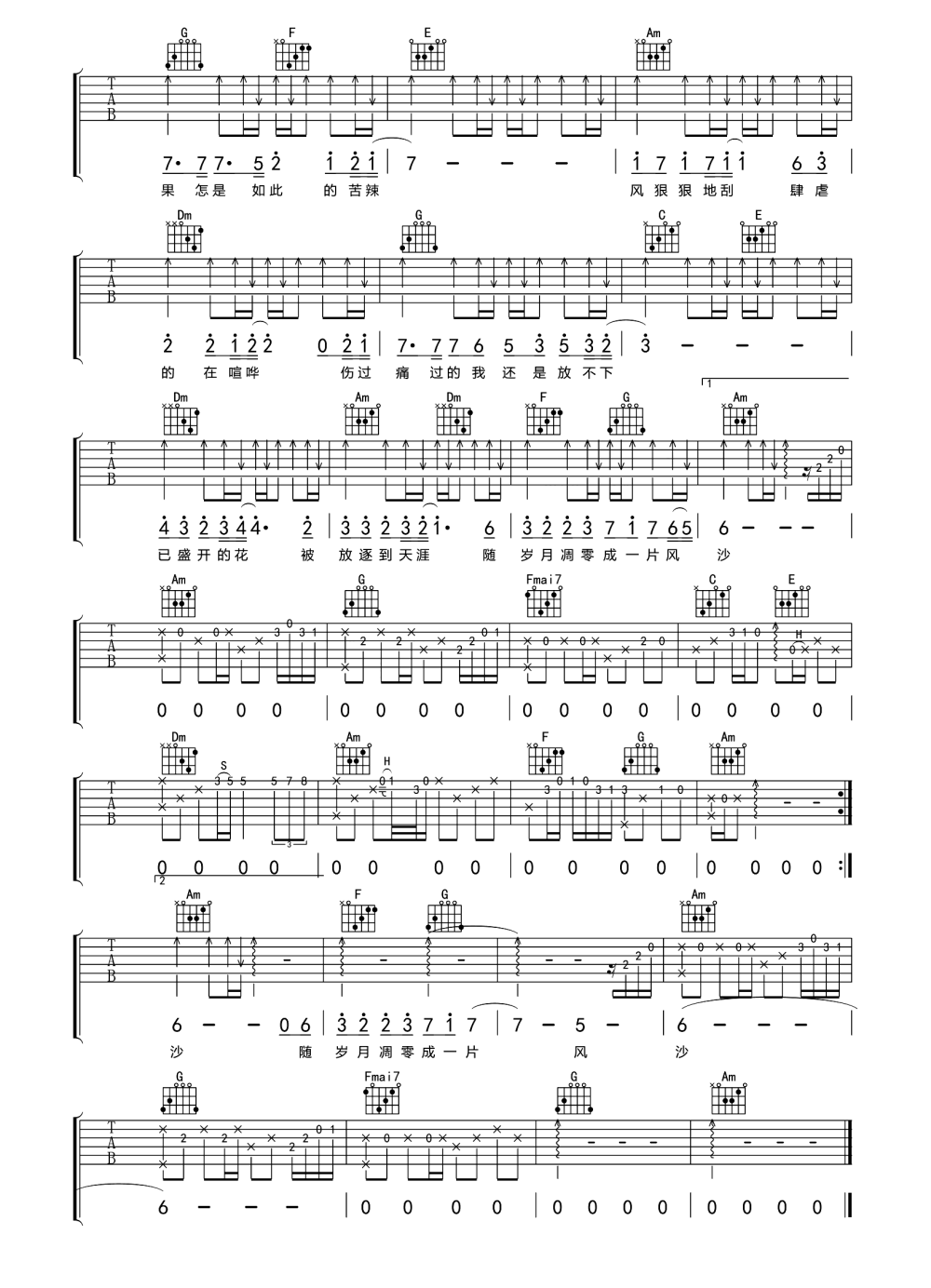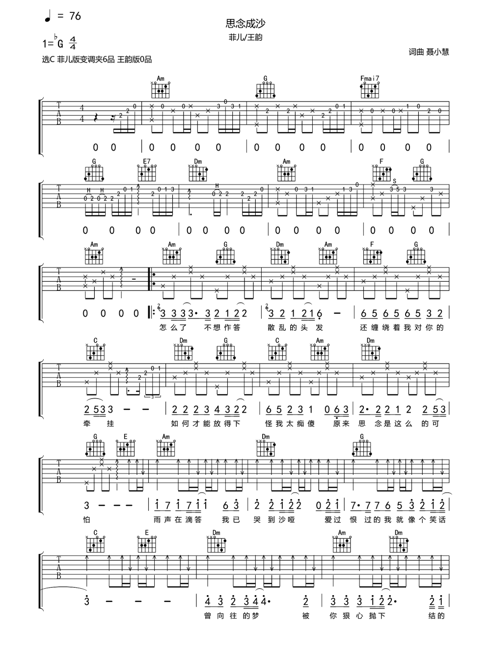 - 菲儿《思念成沙》吉他谱_吉他弹唱谱_JTSJ编配