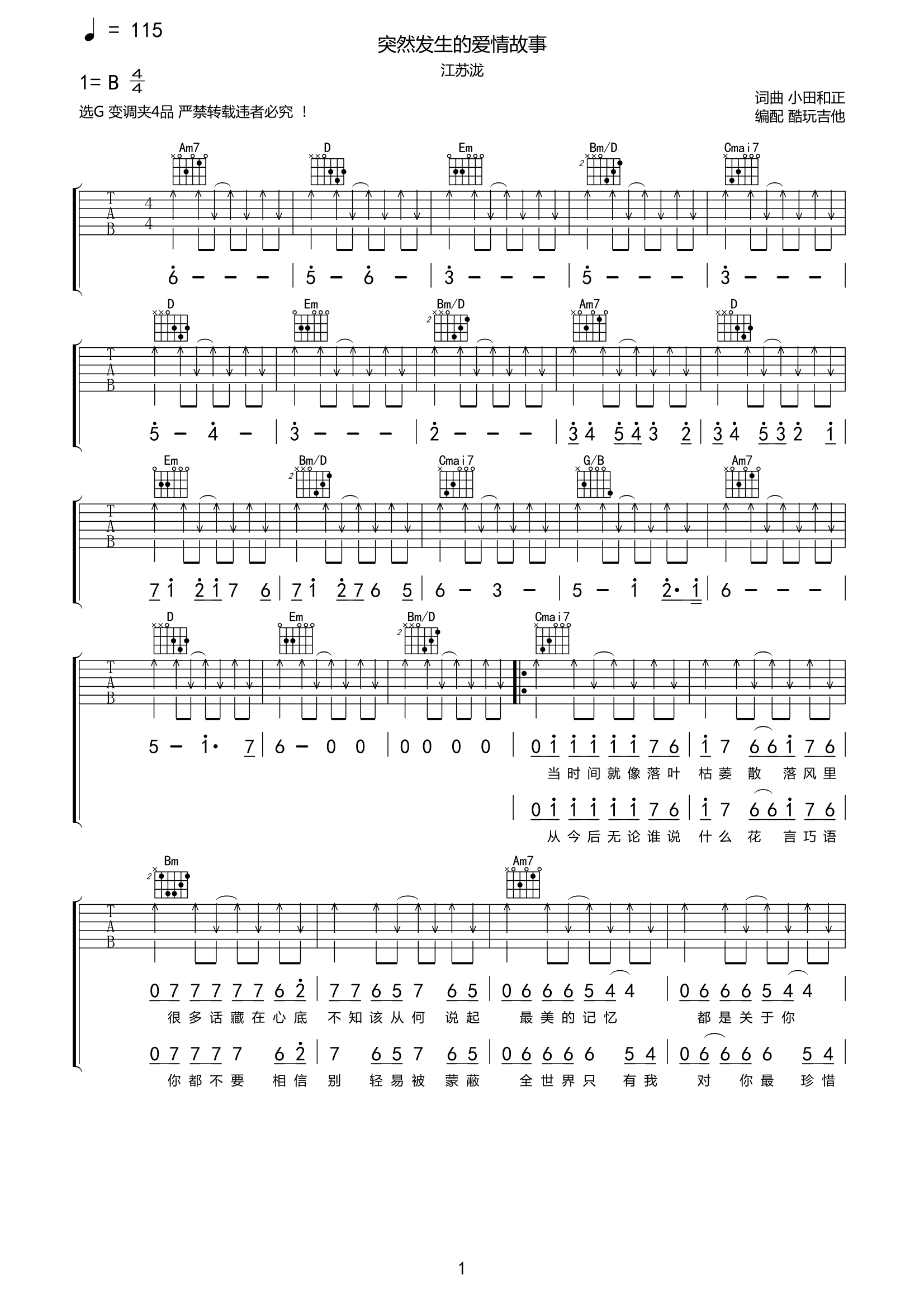 江苏泷《突然发生的爱情故事》吉他谱-G调六线谱弹唱谱