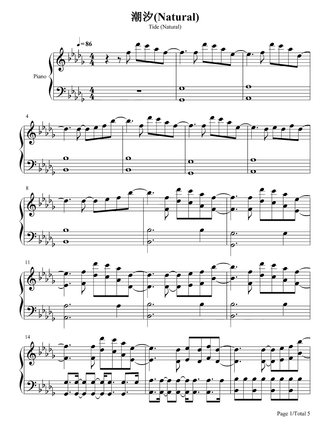 安苏羽、傅梦彤《潮汐》钢琴谱