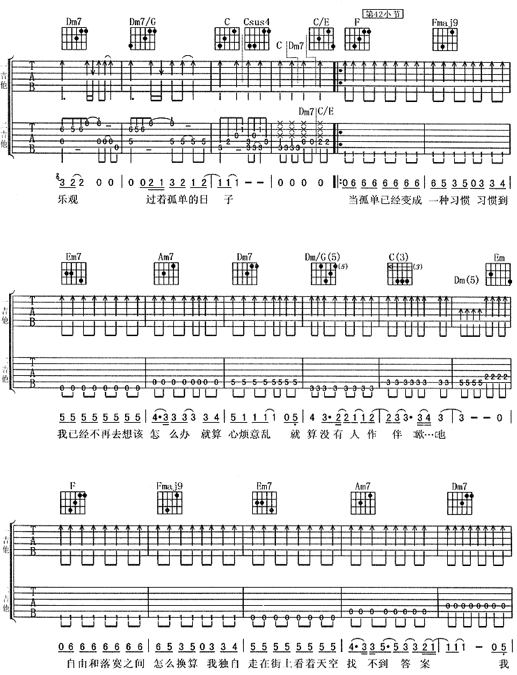刘若英《一辈子的孤独》吉他谱C调附前奏