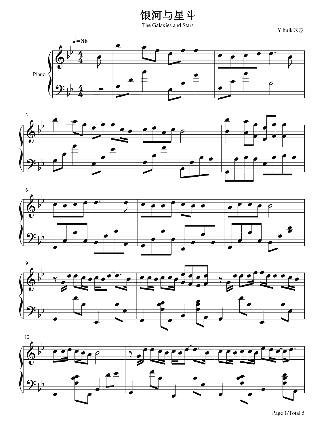抖音 Yihuik苡慧《银河与星斗》钢琴谱