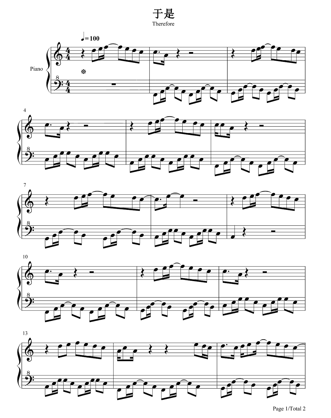邓紫棋《于是》钢琴谱