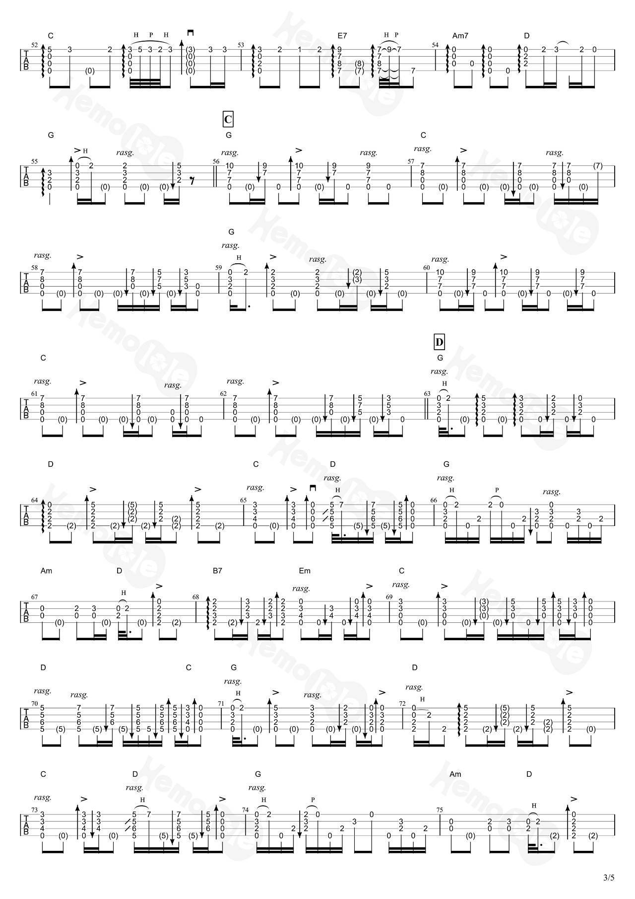 名渡山辽《Memory》尤克里里谱指弹版