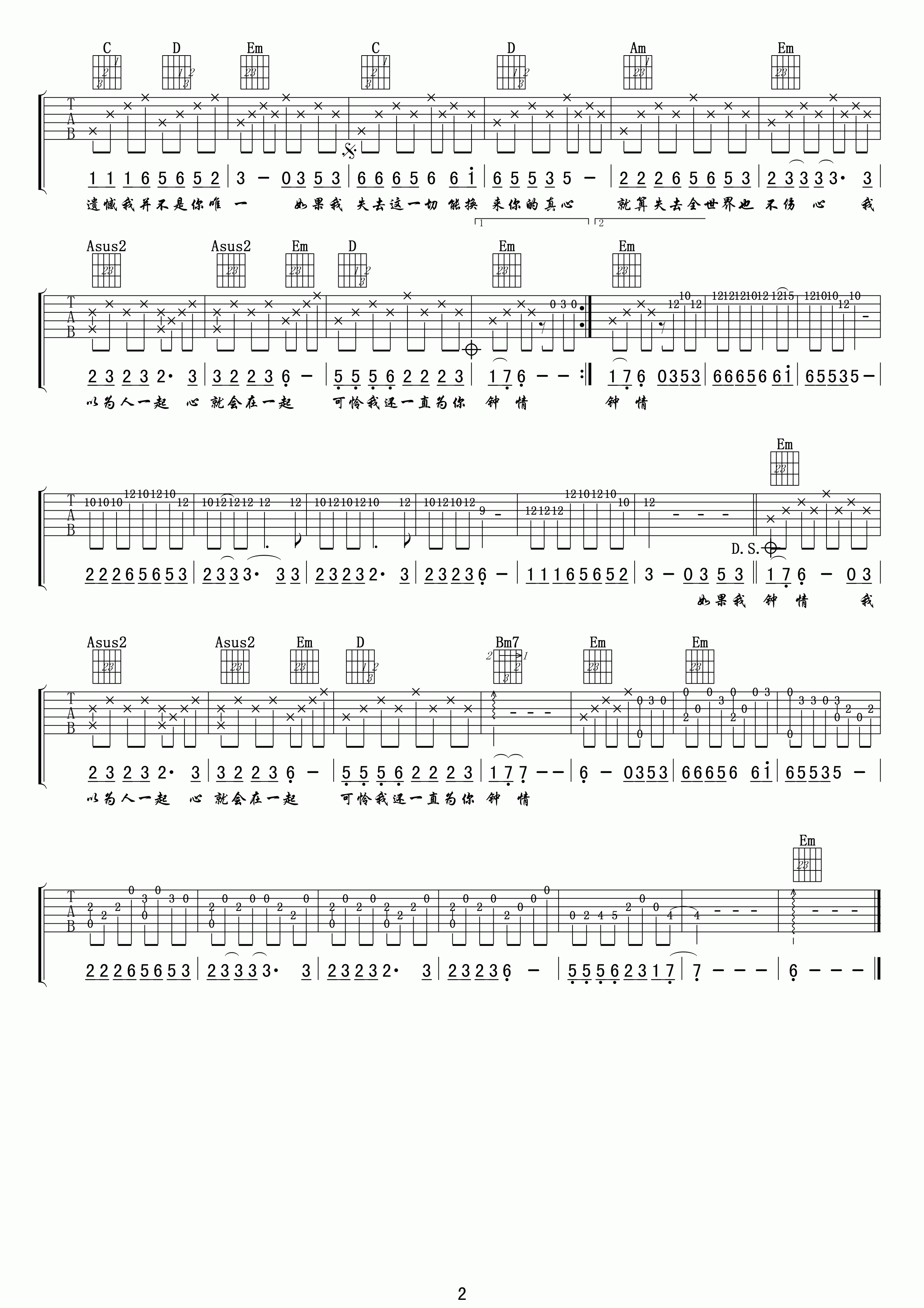 - 田一龙《一定要爱你》吉他谱_吉他弹唱谱