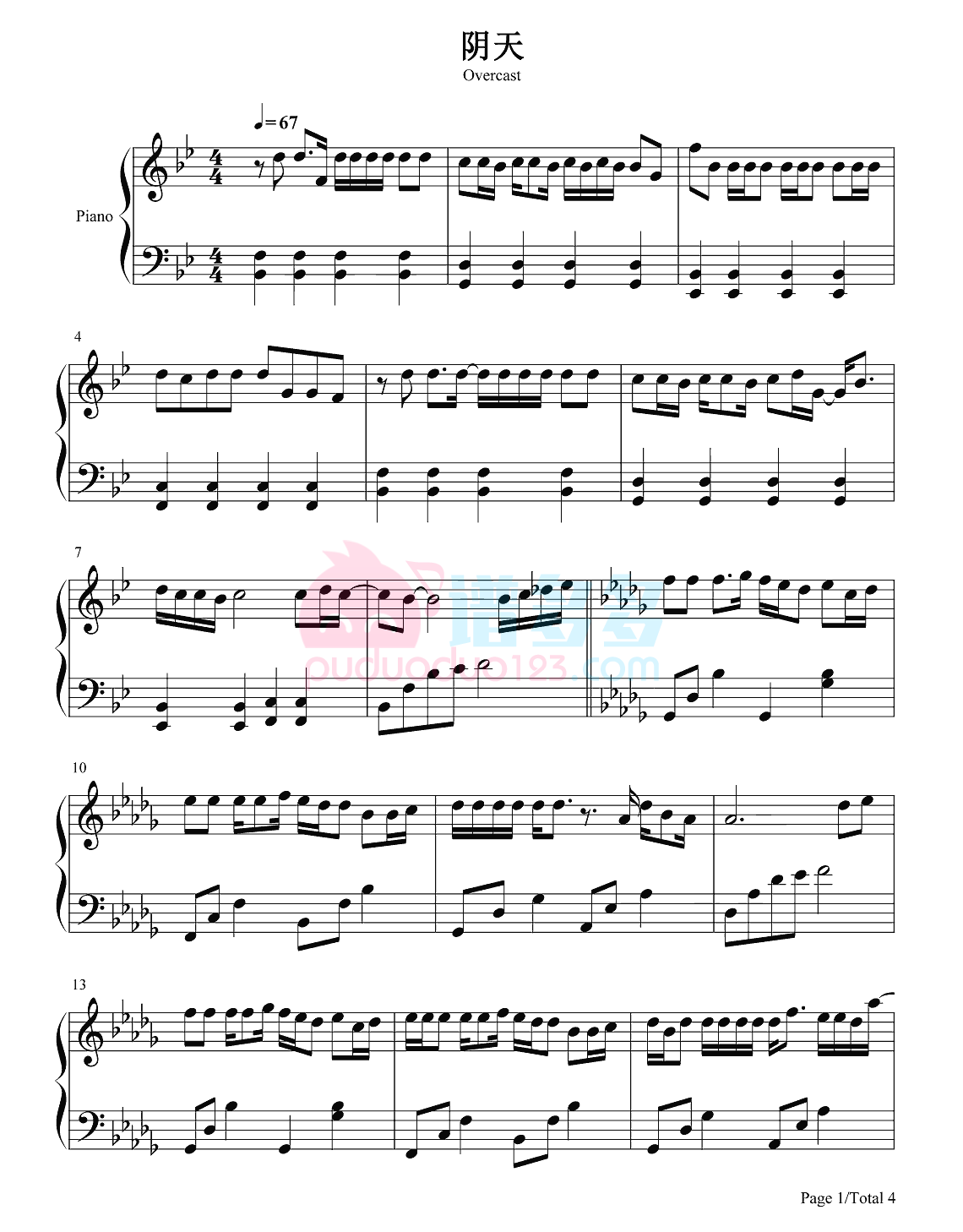莫文蔚《阴天》钢琴谱