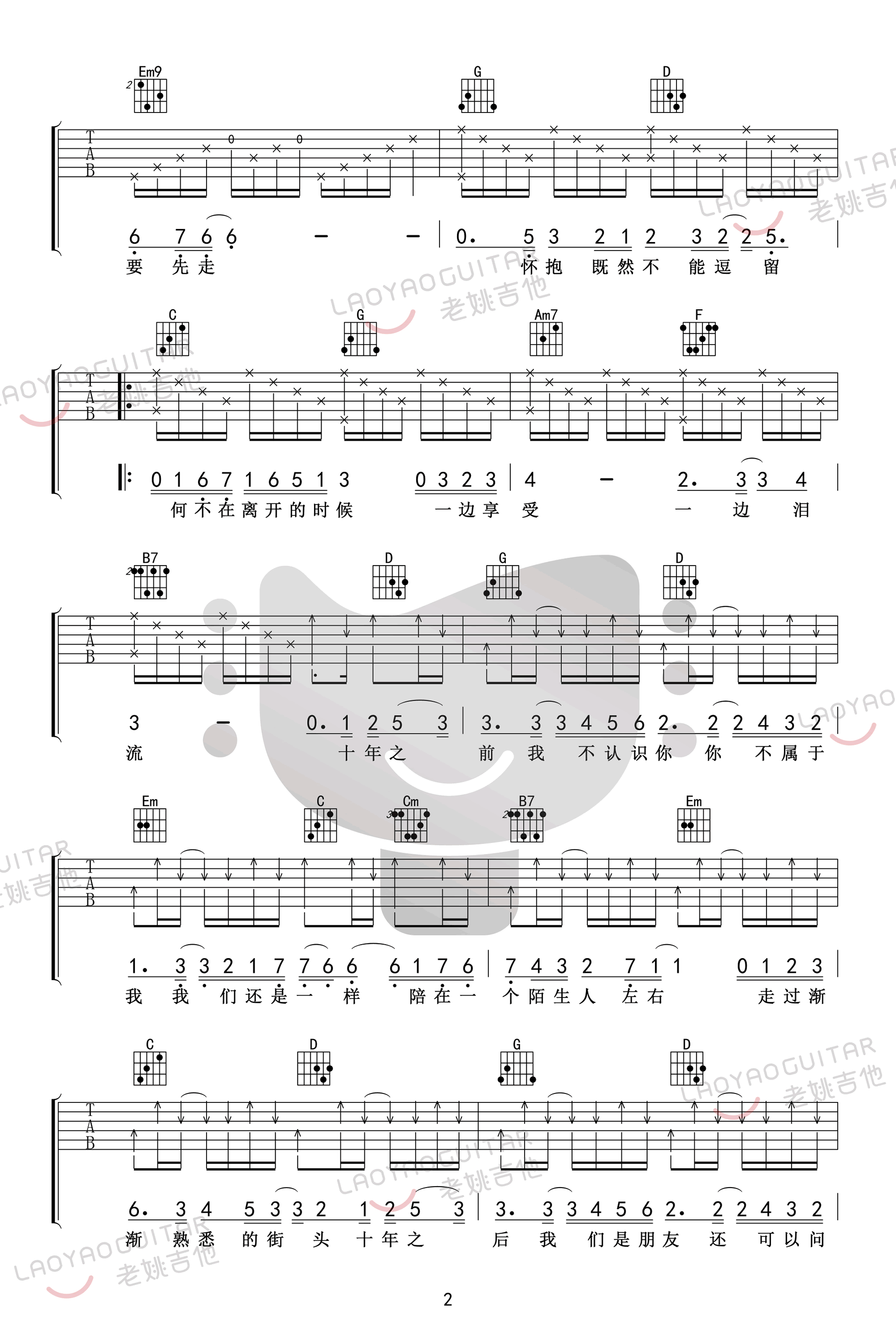 陈奕迅《十年》吉他谱 G调原版六线谱