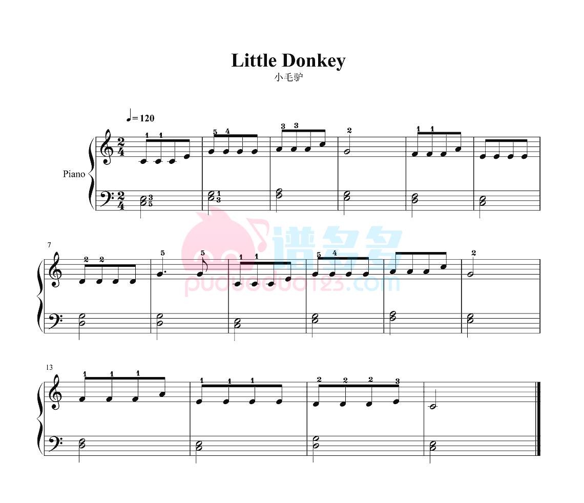 儿歌《小毛驴》钢琴谱