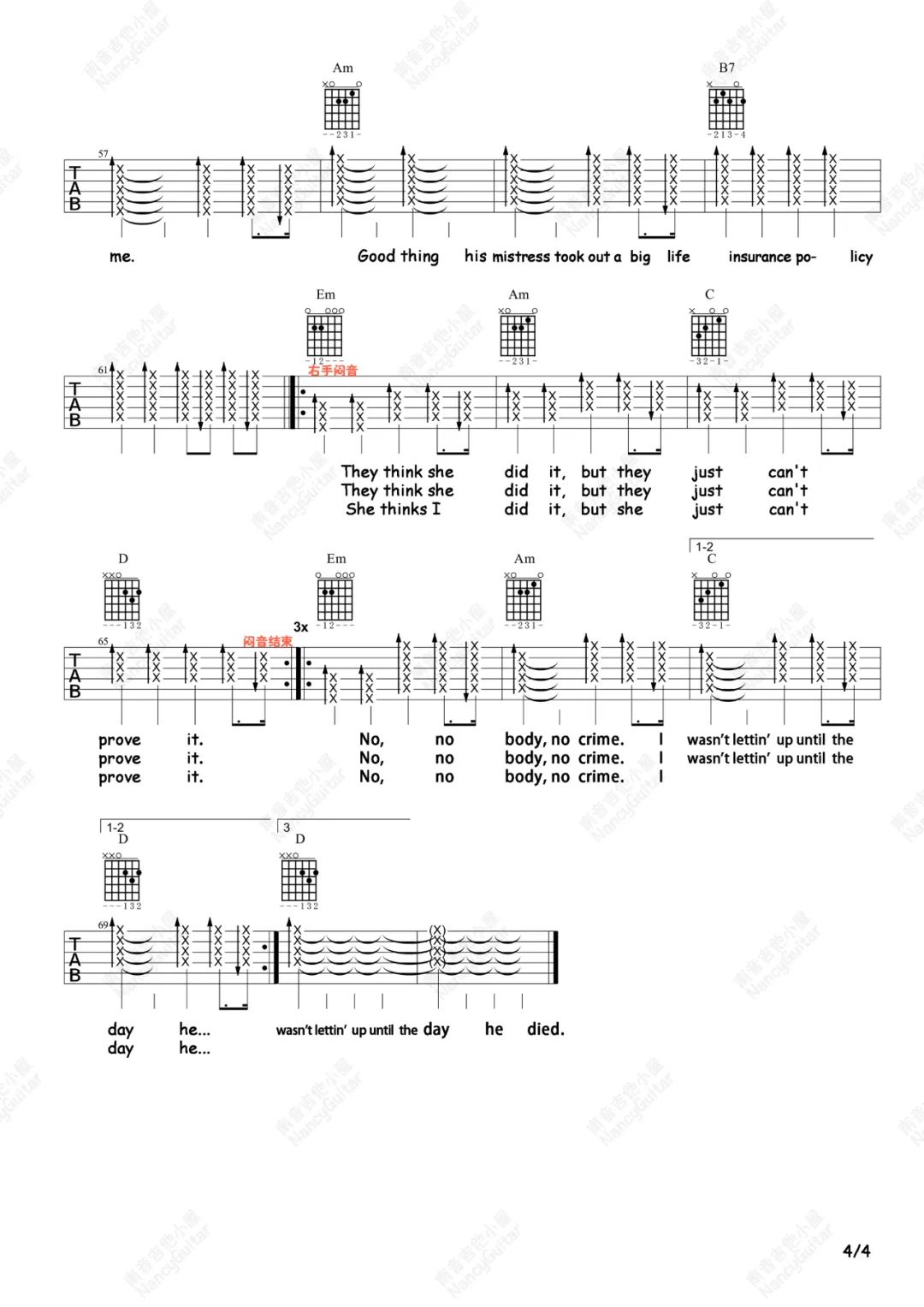 Taylor Swift《No Body No Crime》吉他谱 G调弹唱六线谱