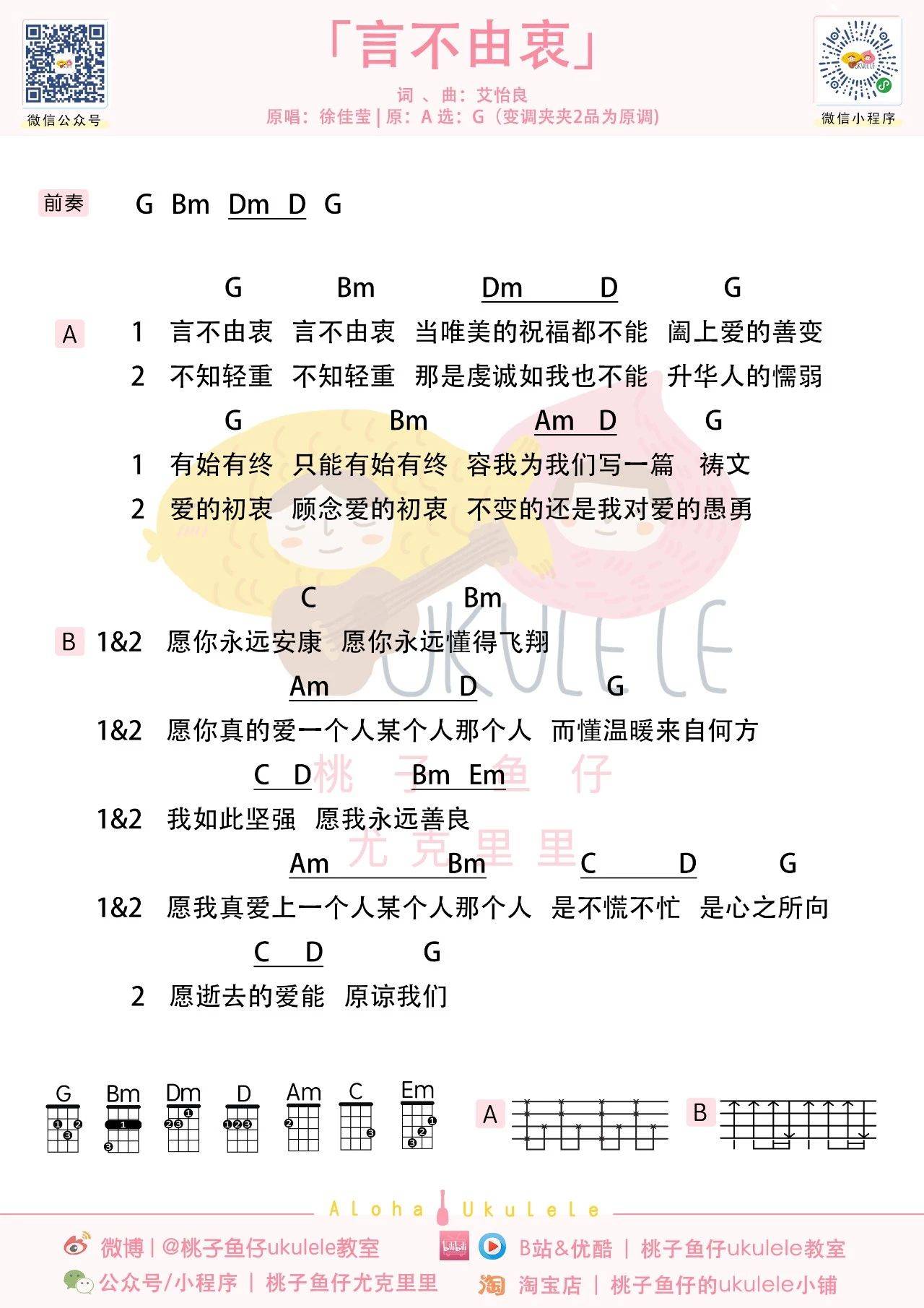 徐佳莹《言不由衷》尤克里里谱 G调弹唱和弦谱