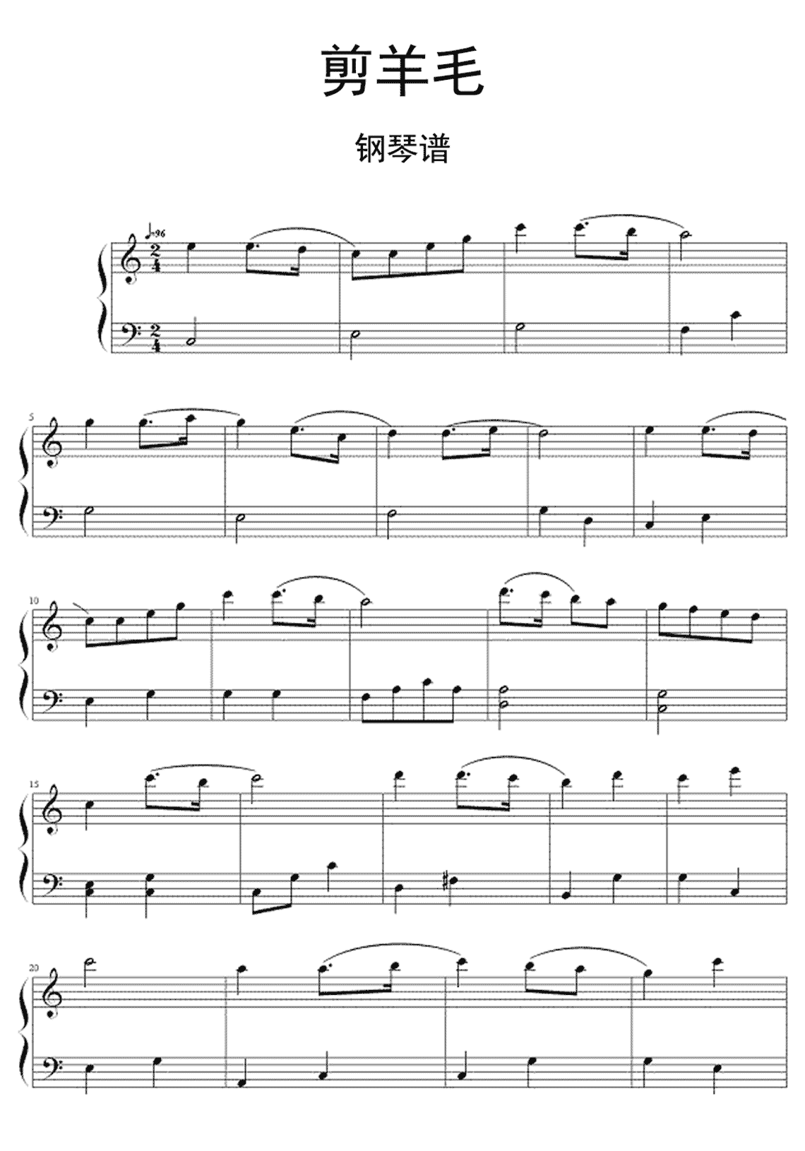 民歌《剪羊毛》钢琴谱