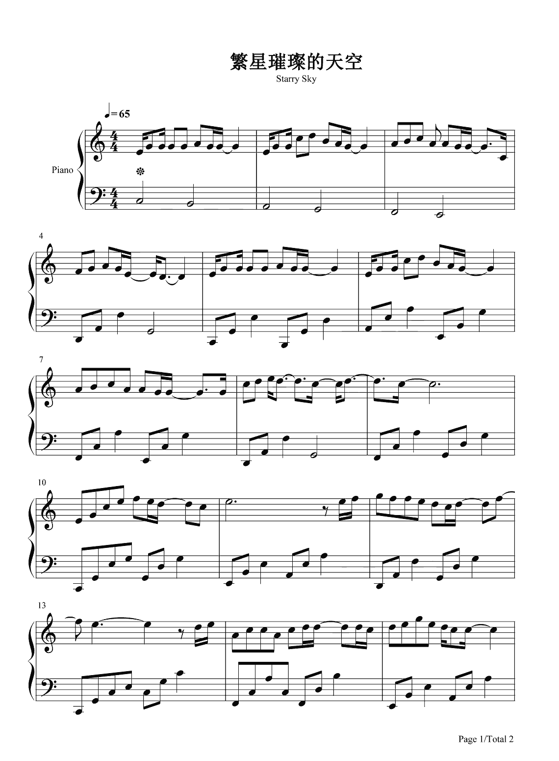周深《繁星璀璨的天空》钢琴谱
