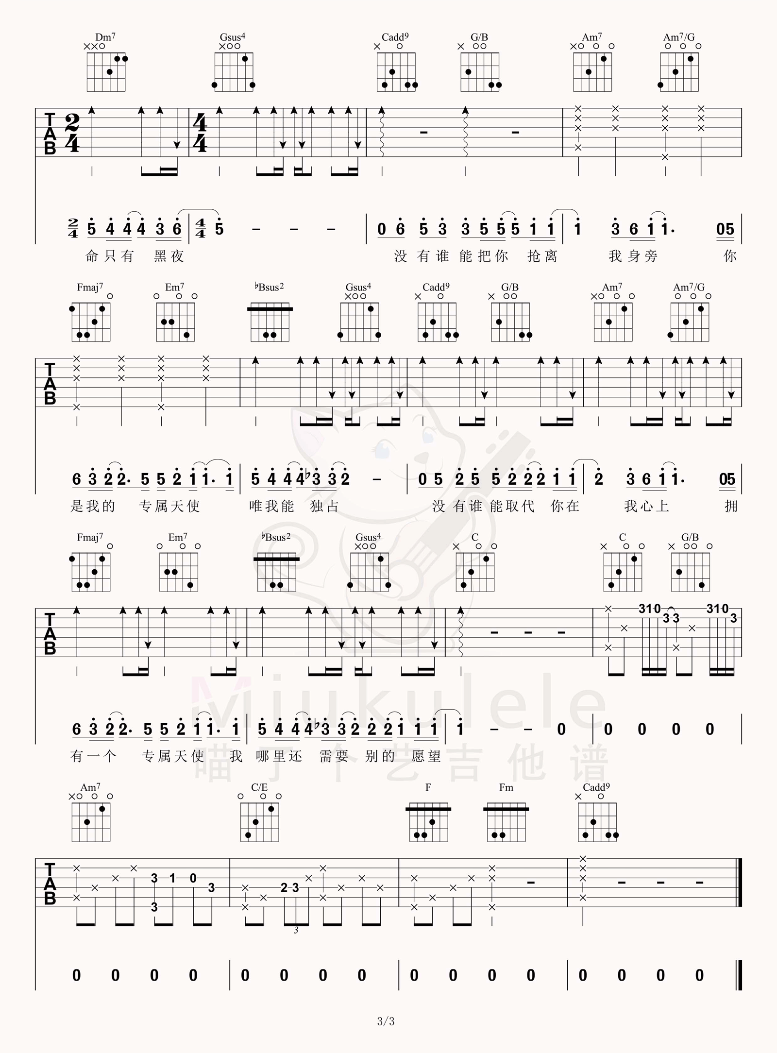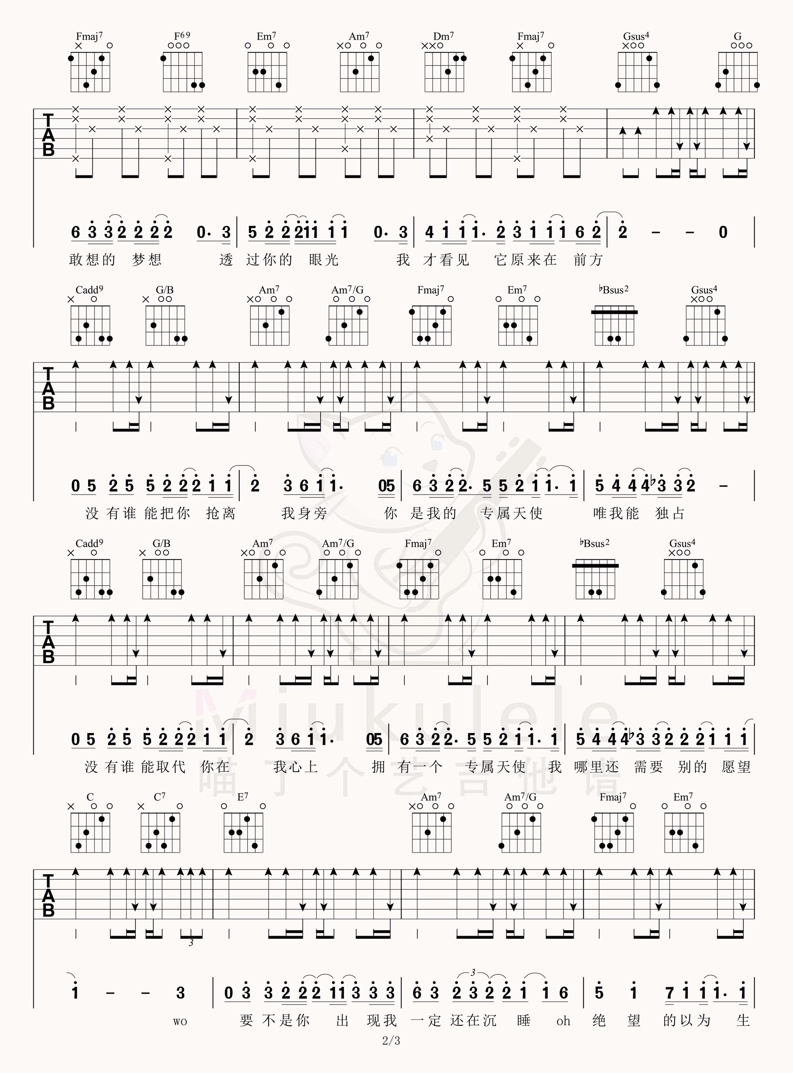 - 专属天使吉他谱_Tank_C调弹唱六线谱