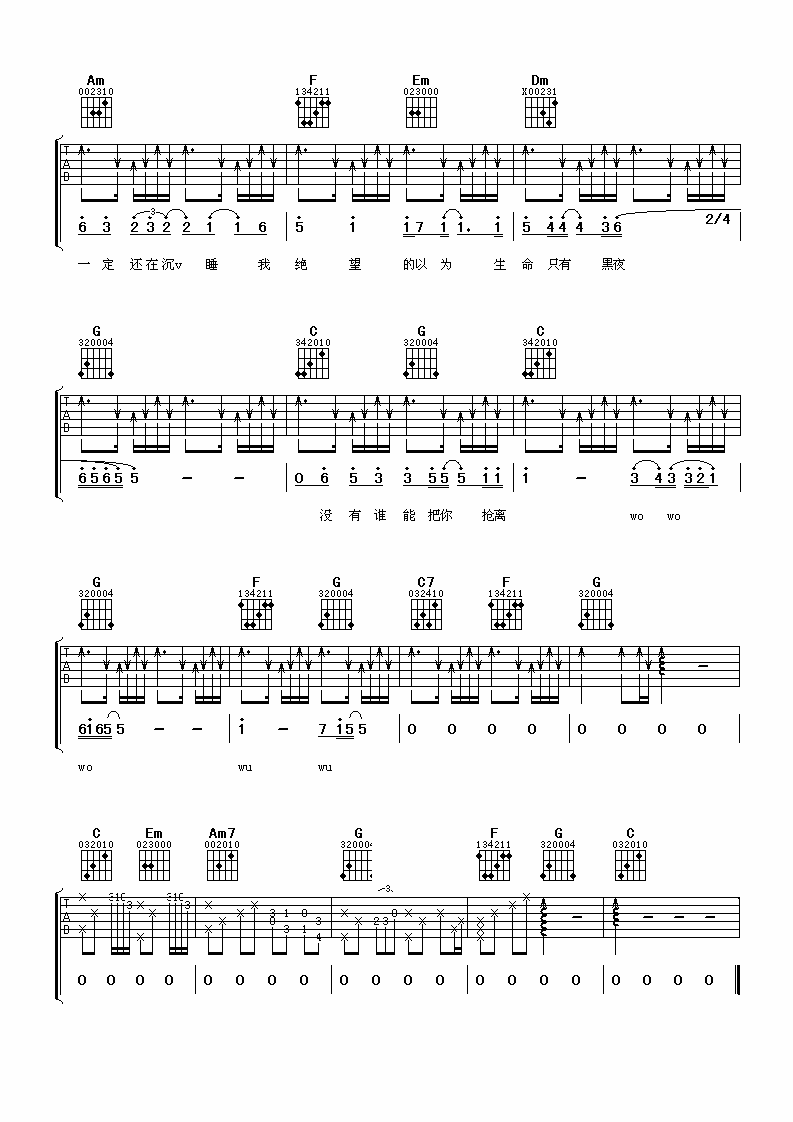 - Tank《千年泪》-弦木吉他-C调六线谱弹唱