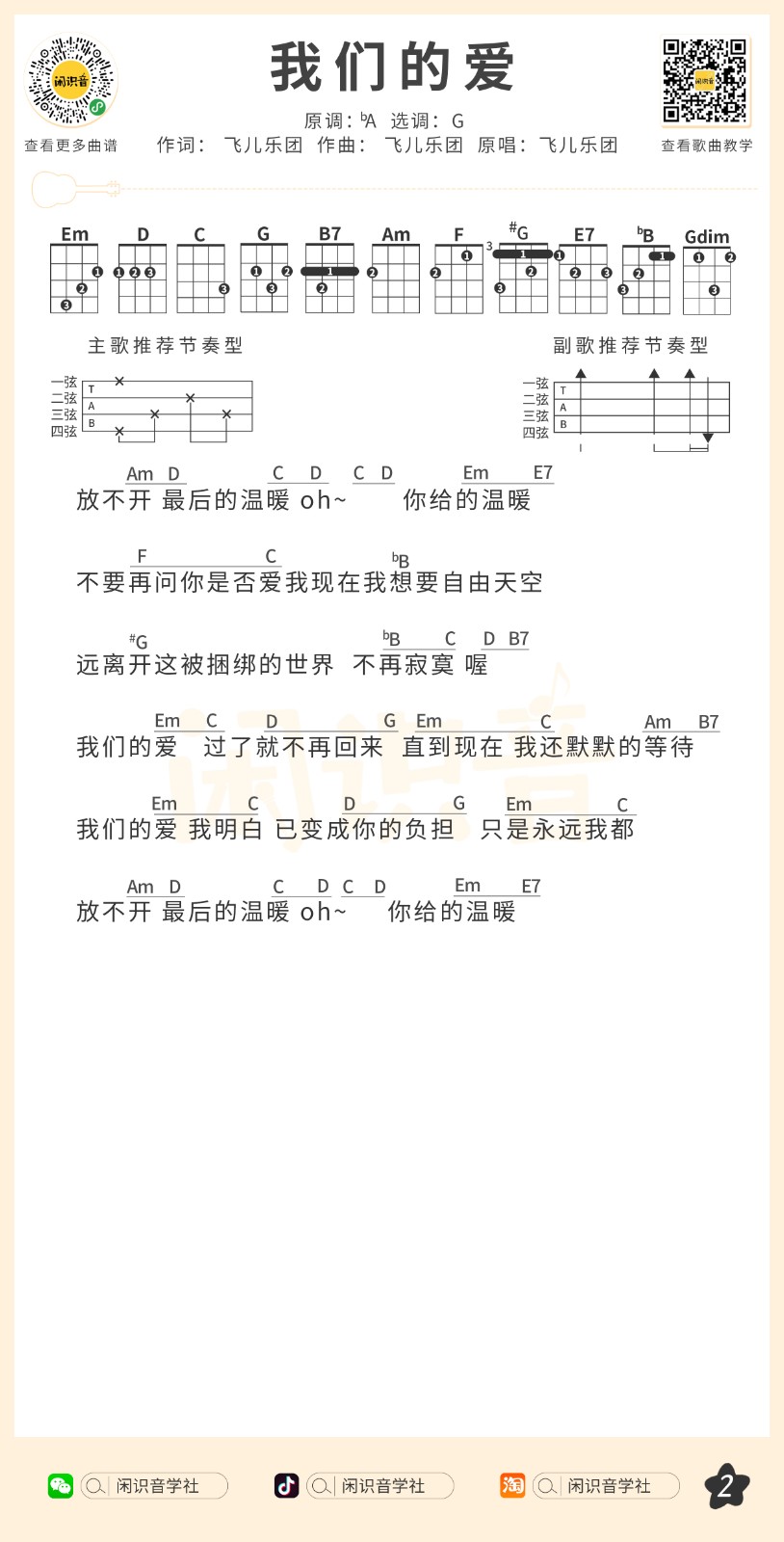 - 飞儿乐团《我们的爱》尤克里里曲谱-G调完整弹唱