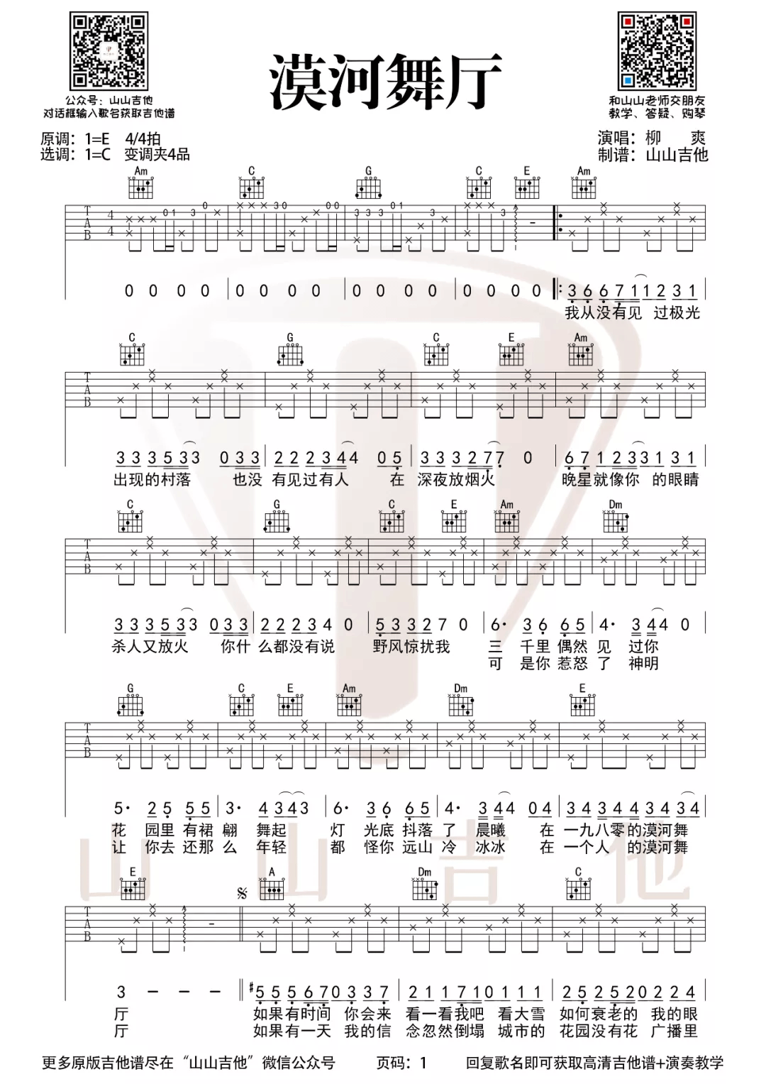 《漠河舞厅》吉他谱_柳爽_C调原版弹唱六线谱