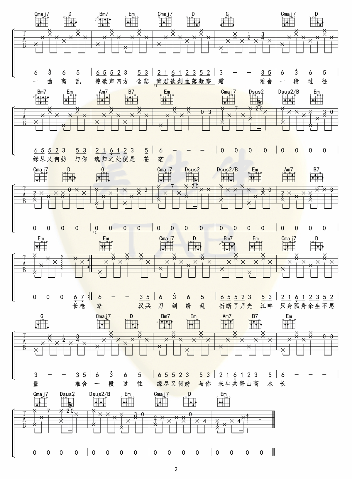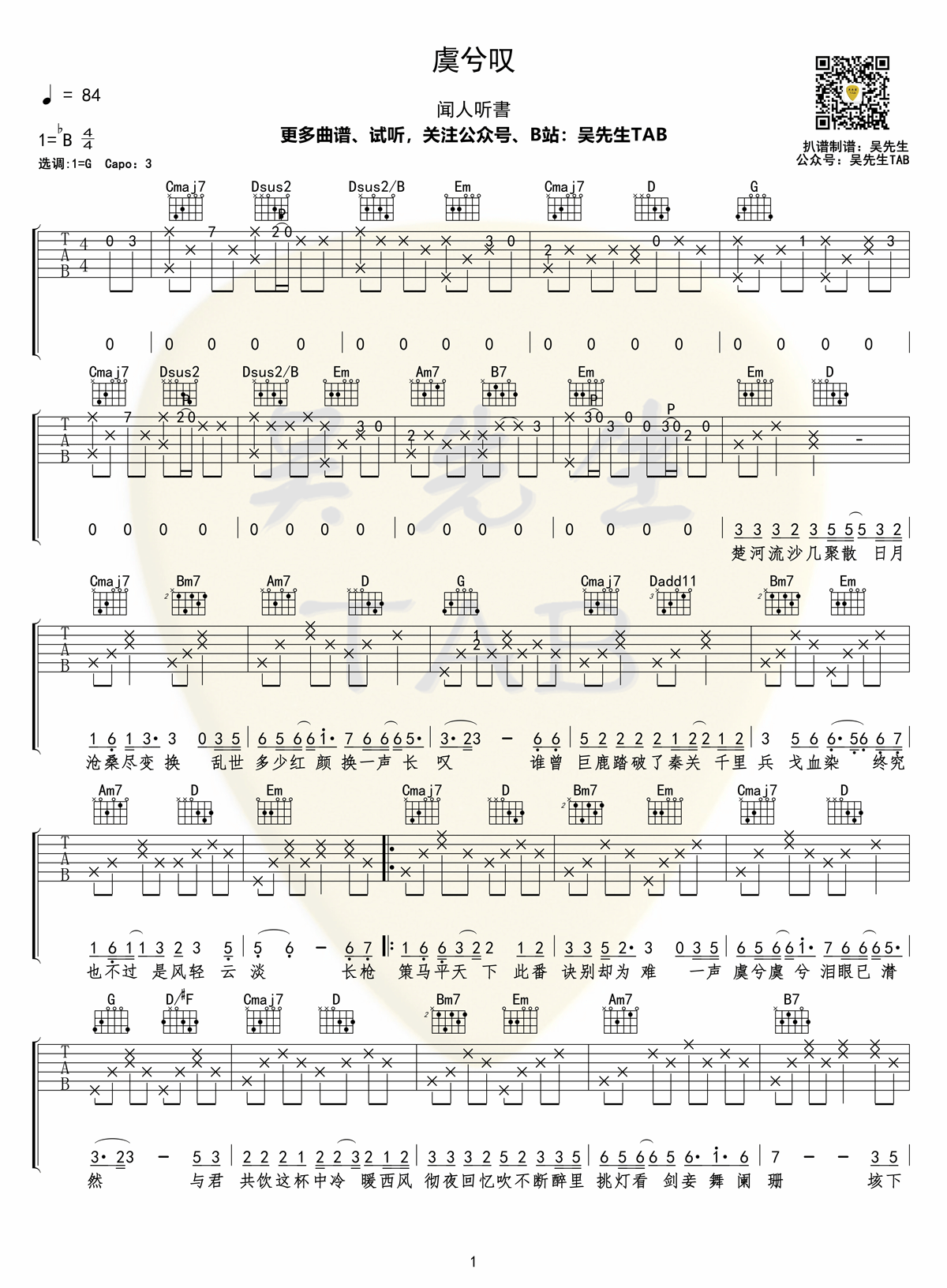 《虞兮叹》吉他谱_闻人听书_G调原版弹唱六线谱