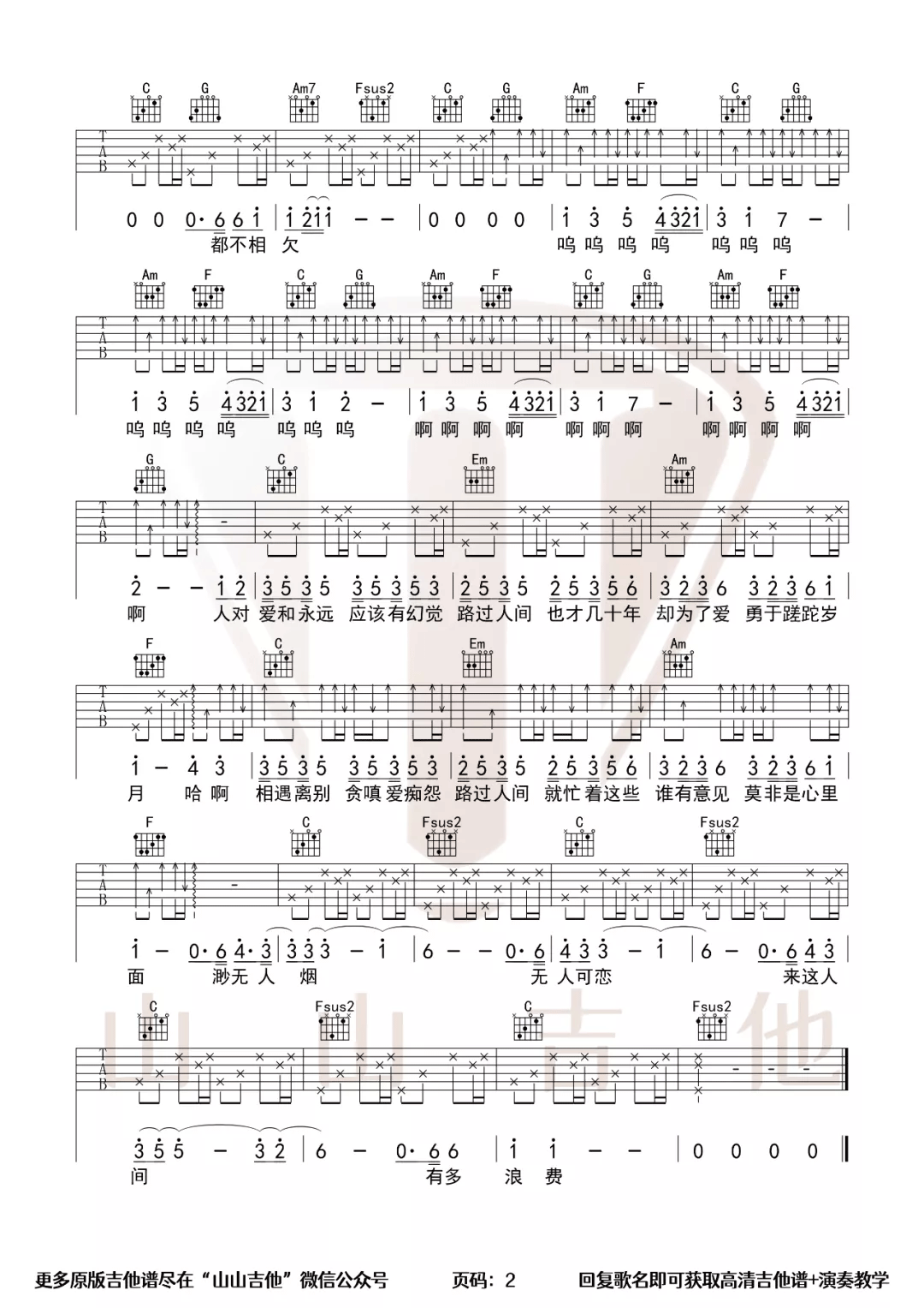 - 印度歌曲《来吧吉米》吉他谱_吉他弹唱谱_YYZJ编配